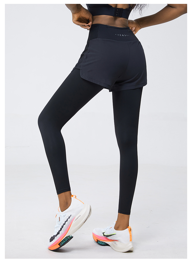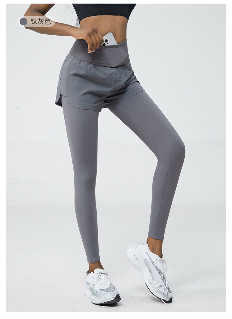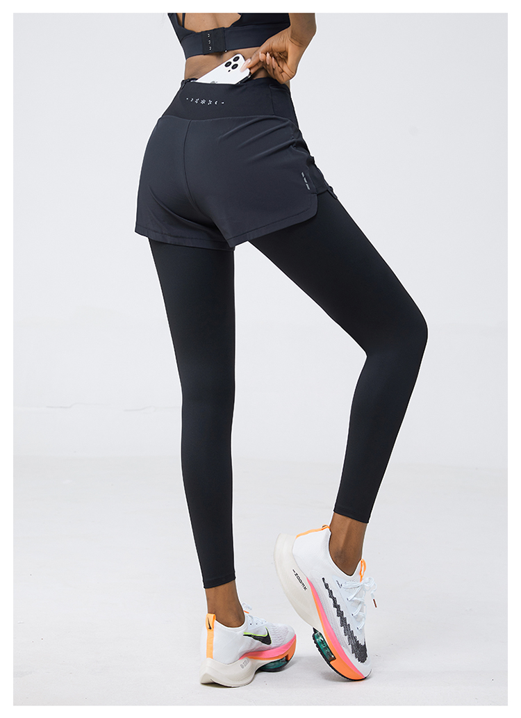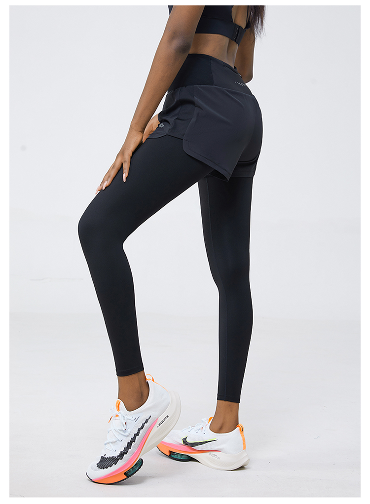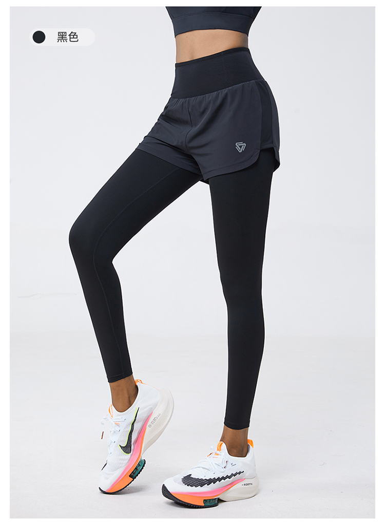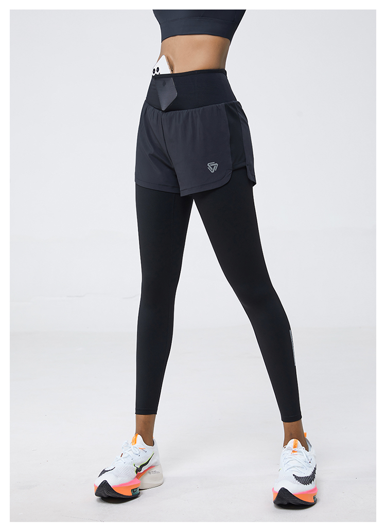 科里芙 全腰围口袋假两件长裤紧身高腰长裤跑步训练运动专业女健身裤