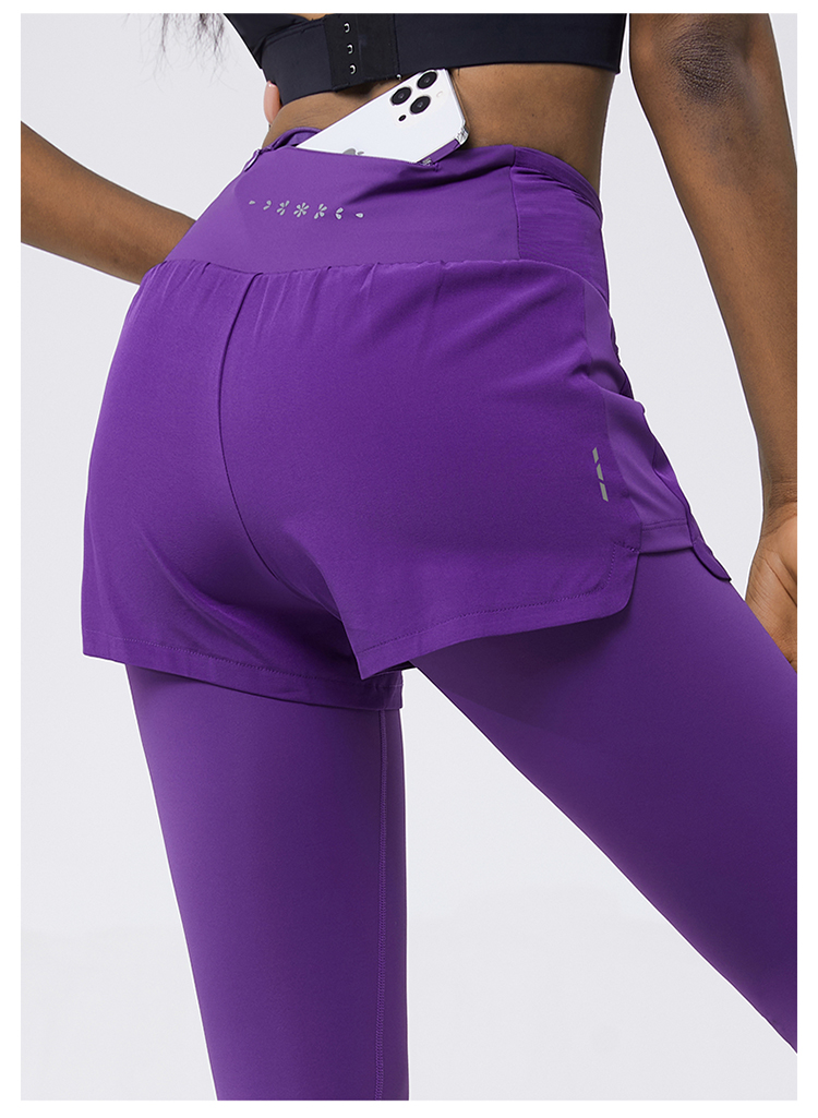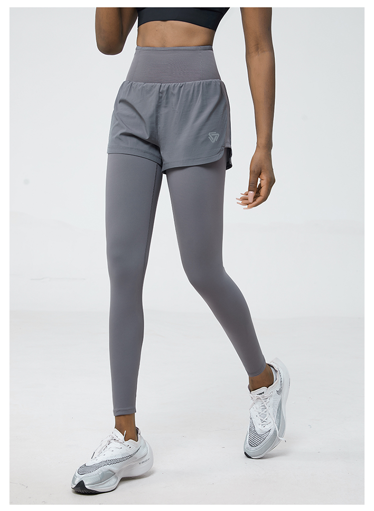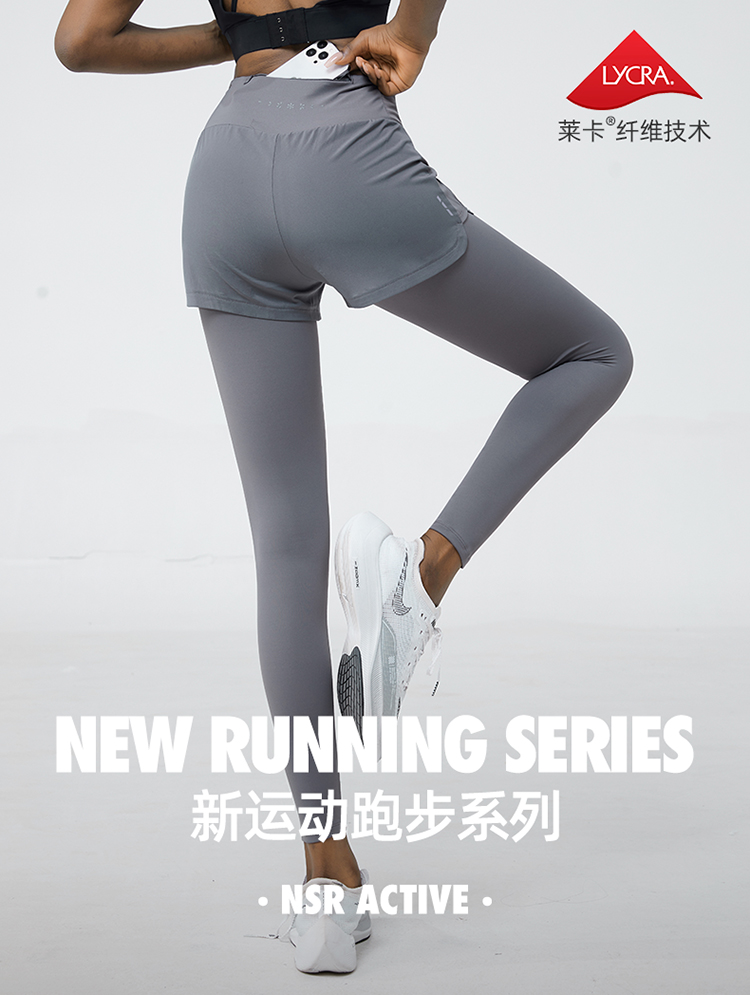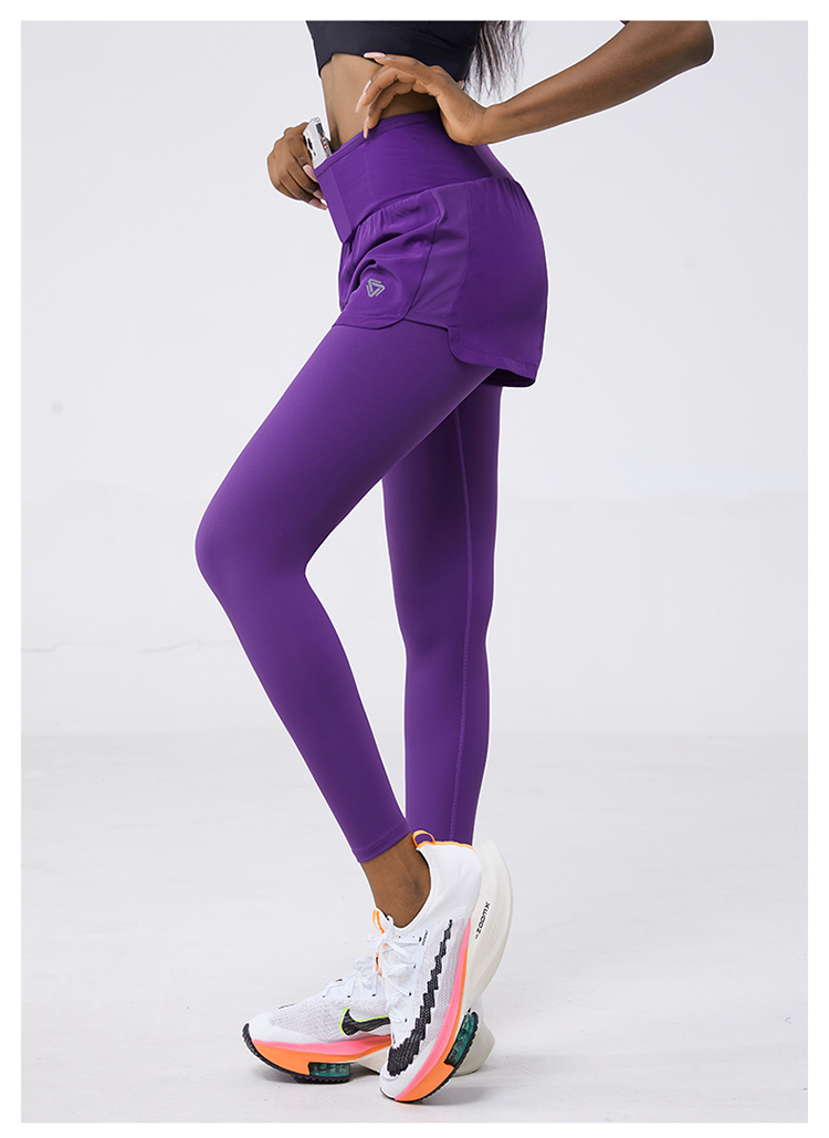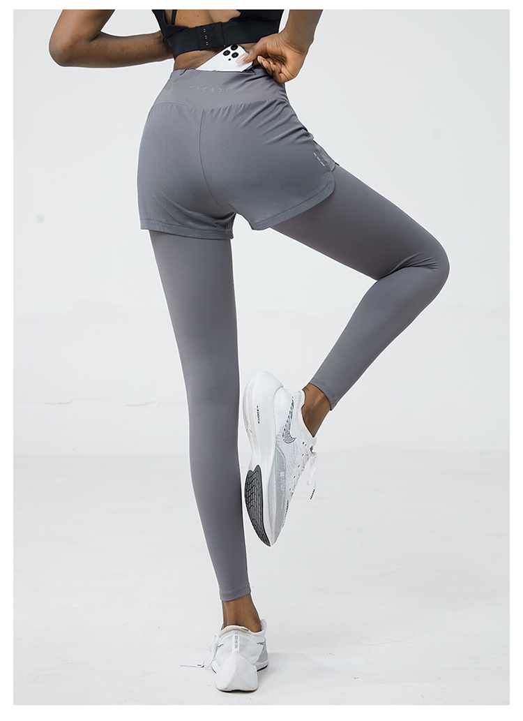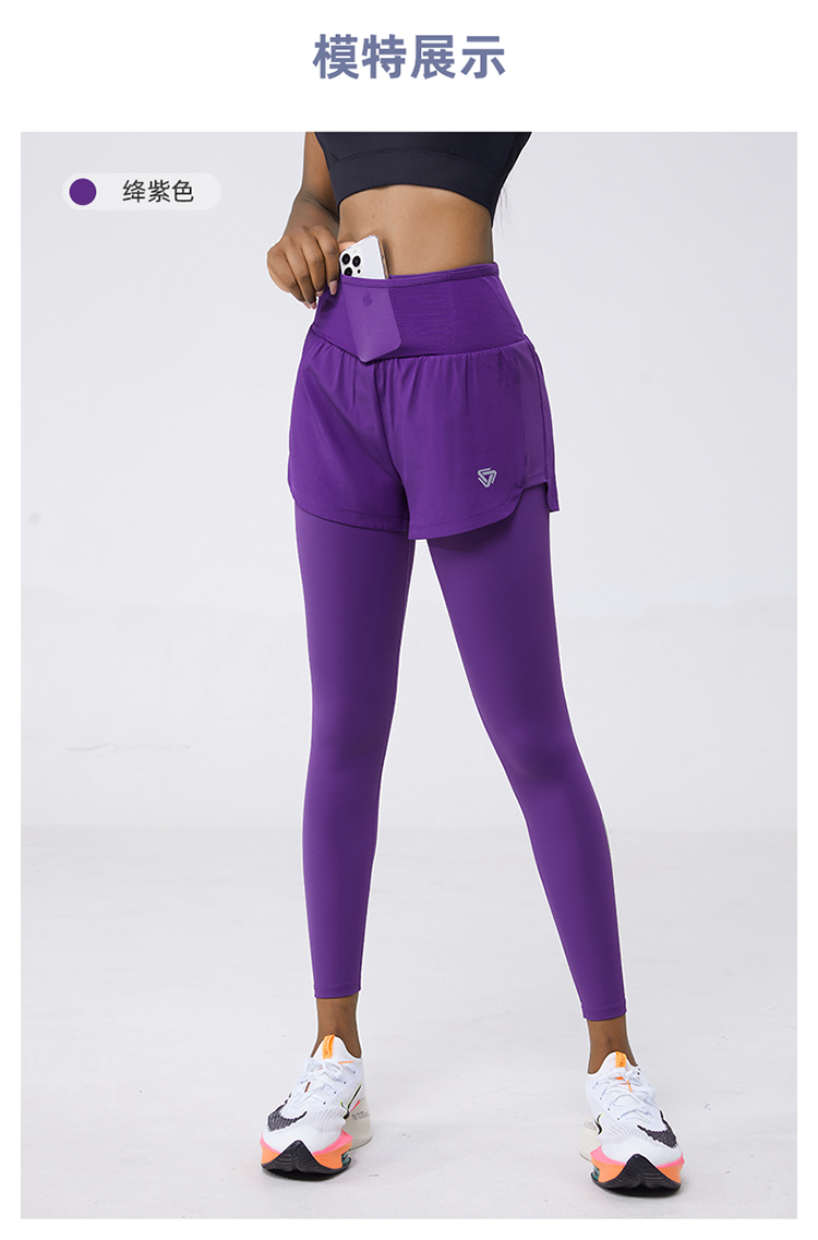 科里芙 全腰围口袋假两件长裤紧身高腰长裤跑步训练运动专业女健身裤