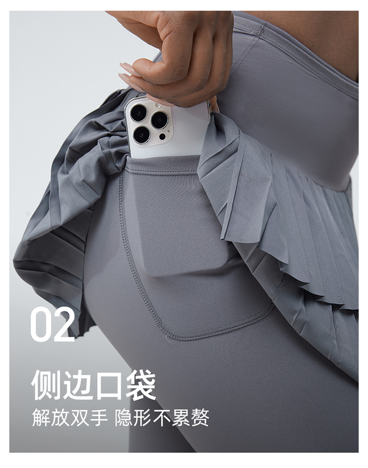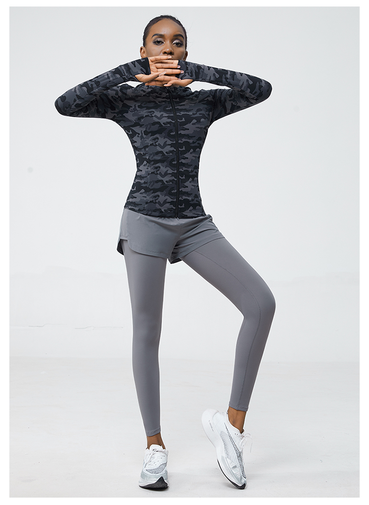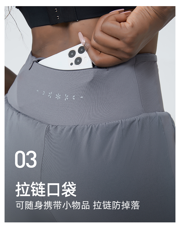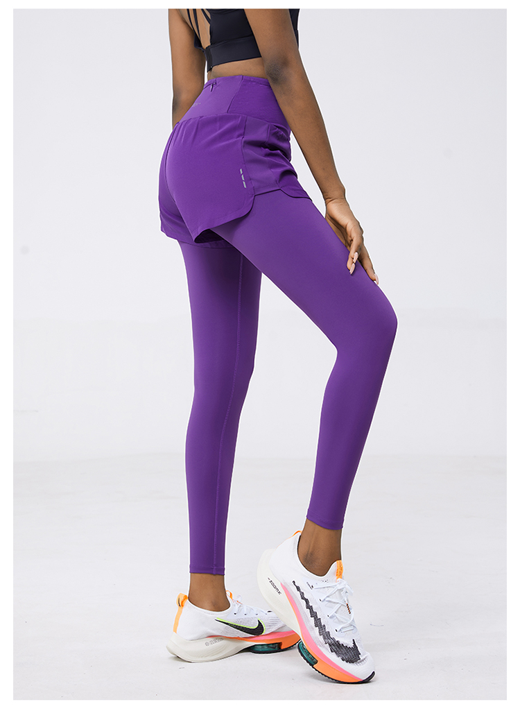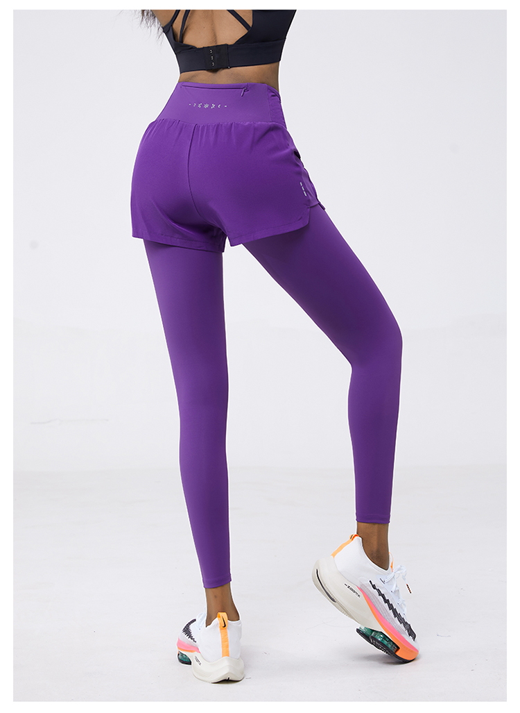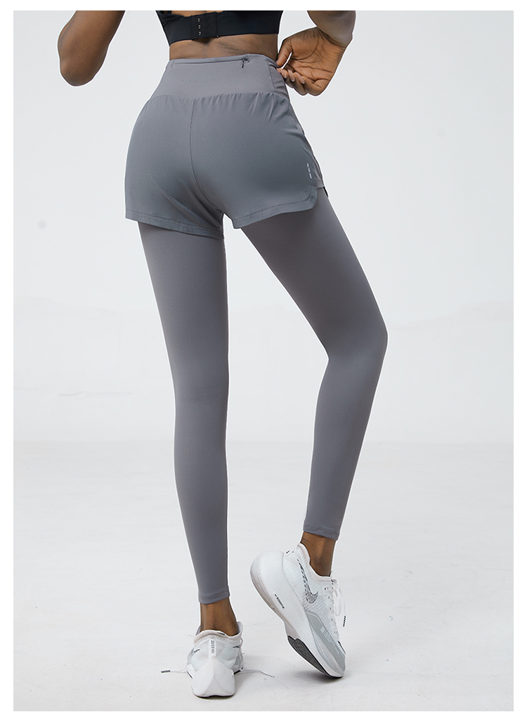 科里芙 全腰围口袋假两件长裤紧身高腰长裤跑步训练运动专业女健身裤