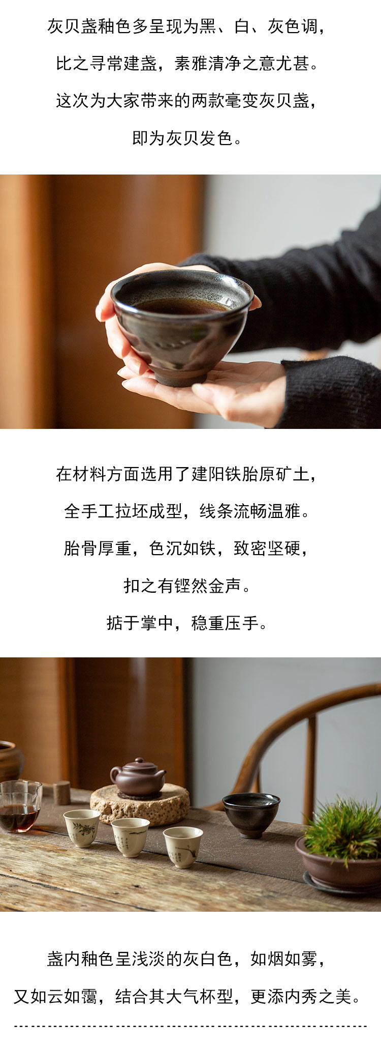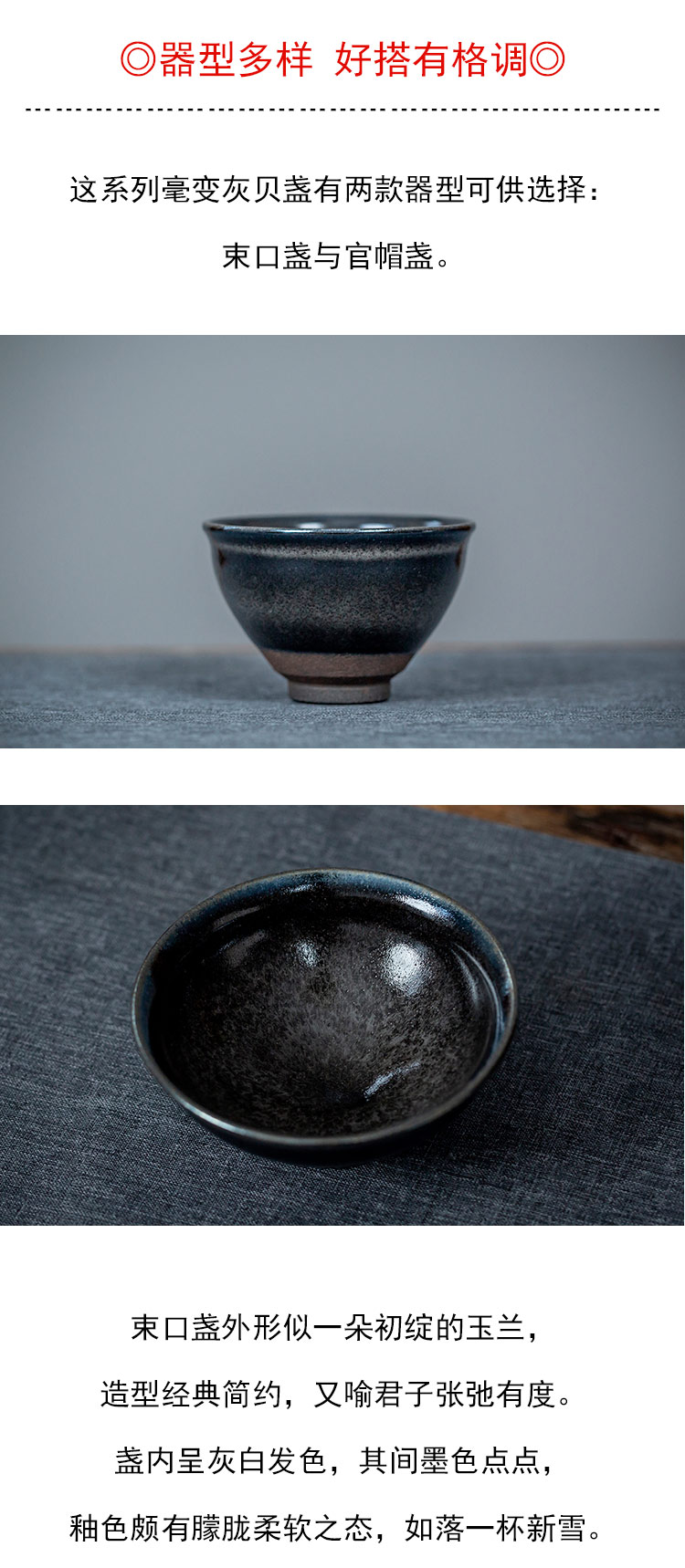 茶香记 刘学财 柴烧建盏 毫变灰贝束口盏 品茗杯 茶道零配