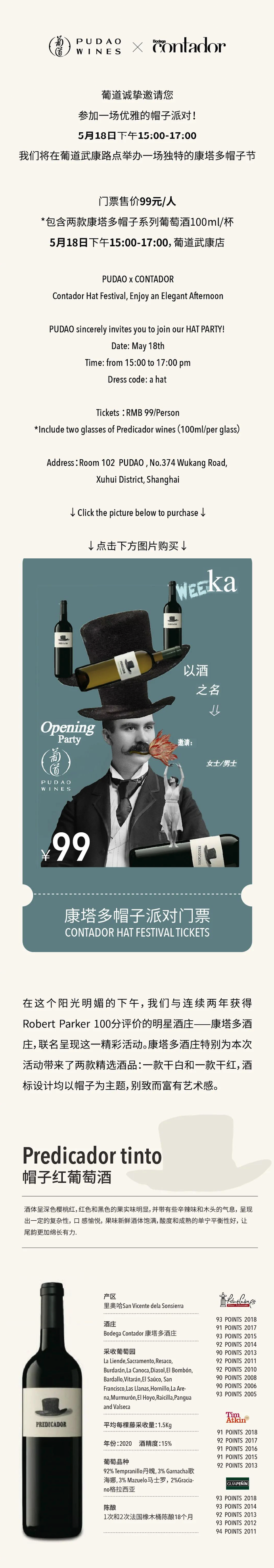 【2024.05.18 武康门票 WUKANGTicket】葡道x康塔多 | 联名帽子节,尽享优雅下午时光 PUDAO x CONTADOR | Joint Hat Festival