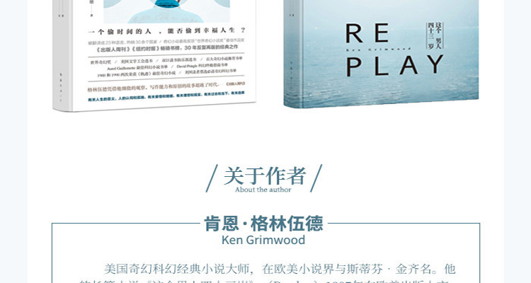 肯恩·格林伍德,美国奇幻科幻经典小说大师,在欧美小说界与斯蒂芬·金齐名。他曾担任广播电台记者,一生创作不多,皆堪称艺术经典,主要作品有《突破》、《伊莉斯》和《突入深渊》等。