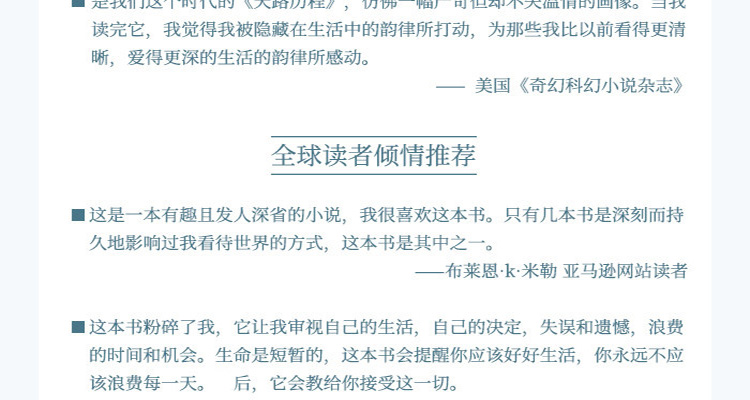 小说家巴利·伍德说:“对于‘如果人生重来一次’这个问题,这本书给出一个令人常满意的答案。”