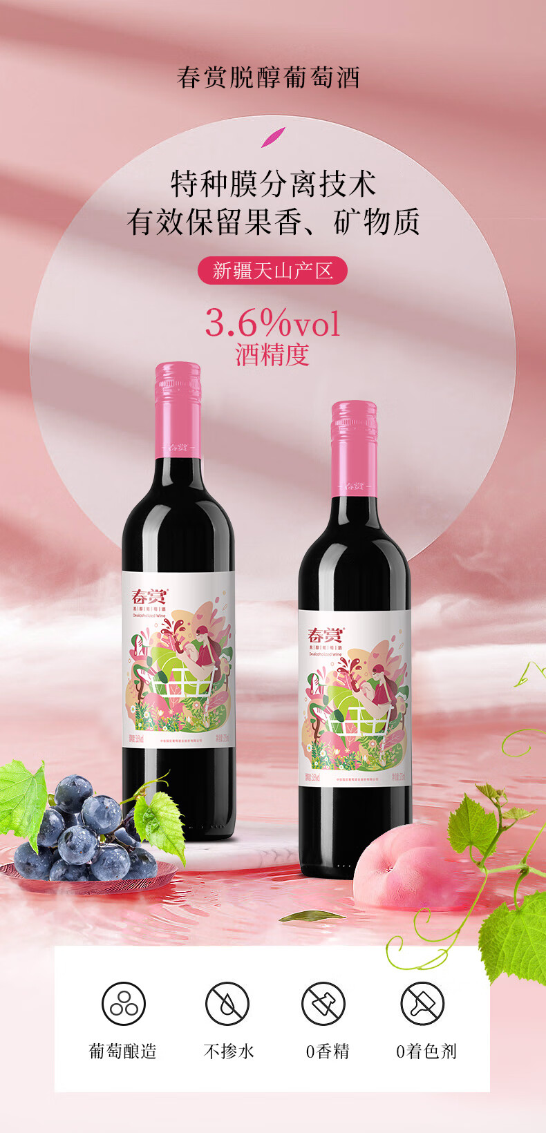 中信尼雅·春赏3.6度脱醇葡萄酒 375mlX6支整箱装 超柔顺口 感黄金酸甜比 紧缩水果营养