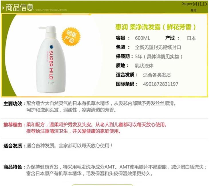 日本资生堂惠润柔净洗发水鲜花芳香600ml