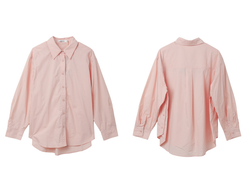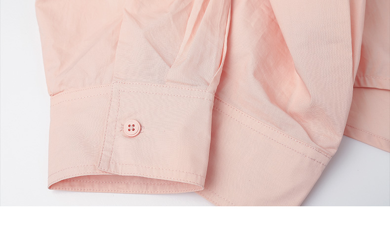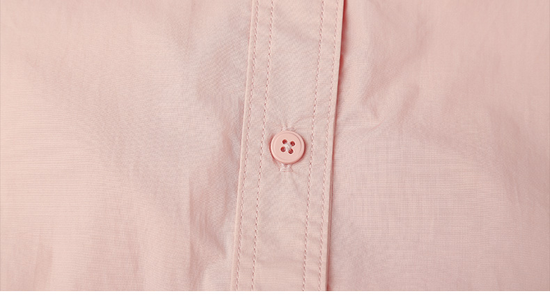 韩系慵懒风粉色长袖衬衫女 翻领单排扣宽松防晒衬衣 小个子通勤百搭上衣