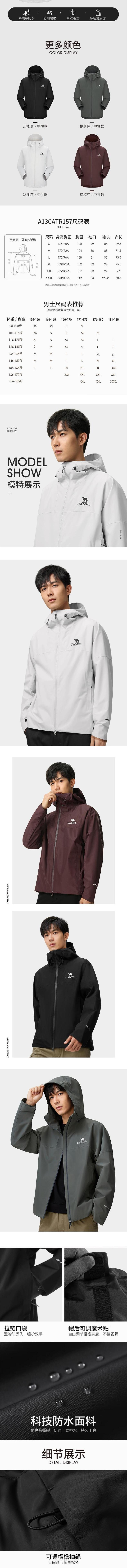 骆驼 男单层冲锋衣 A13CATR157