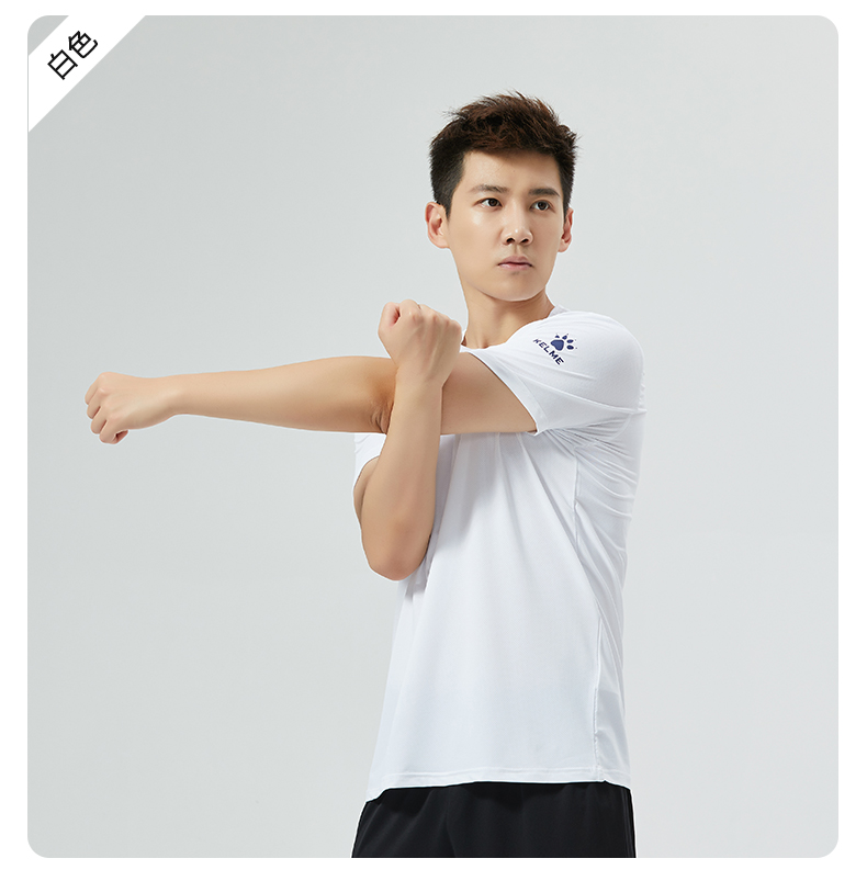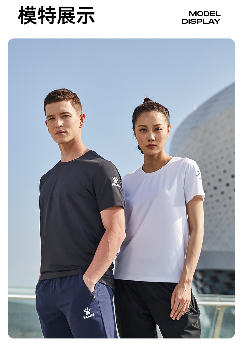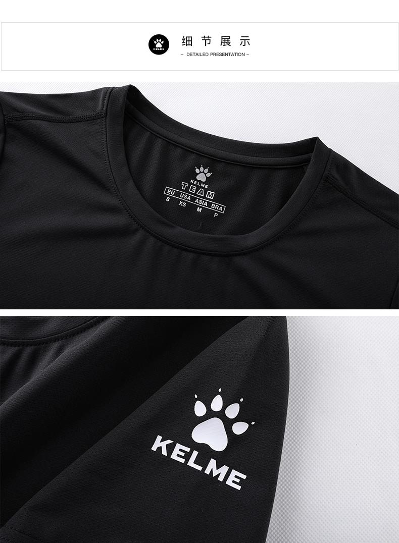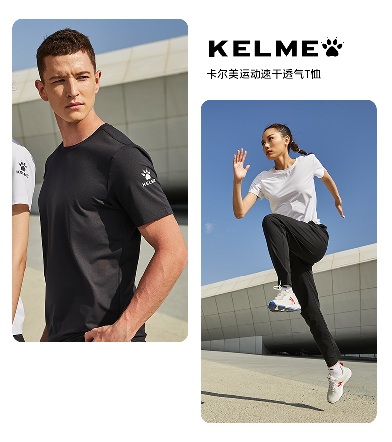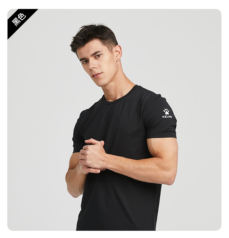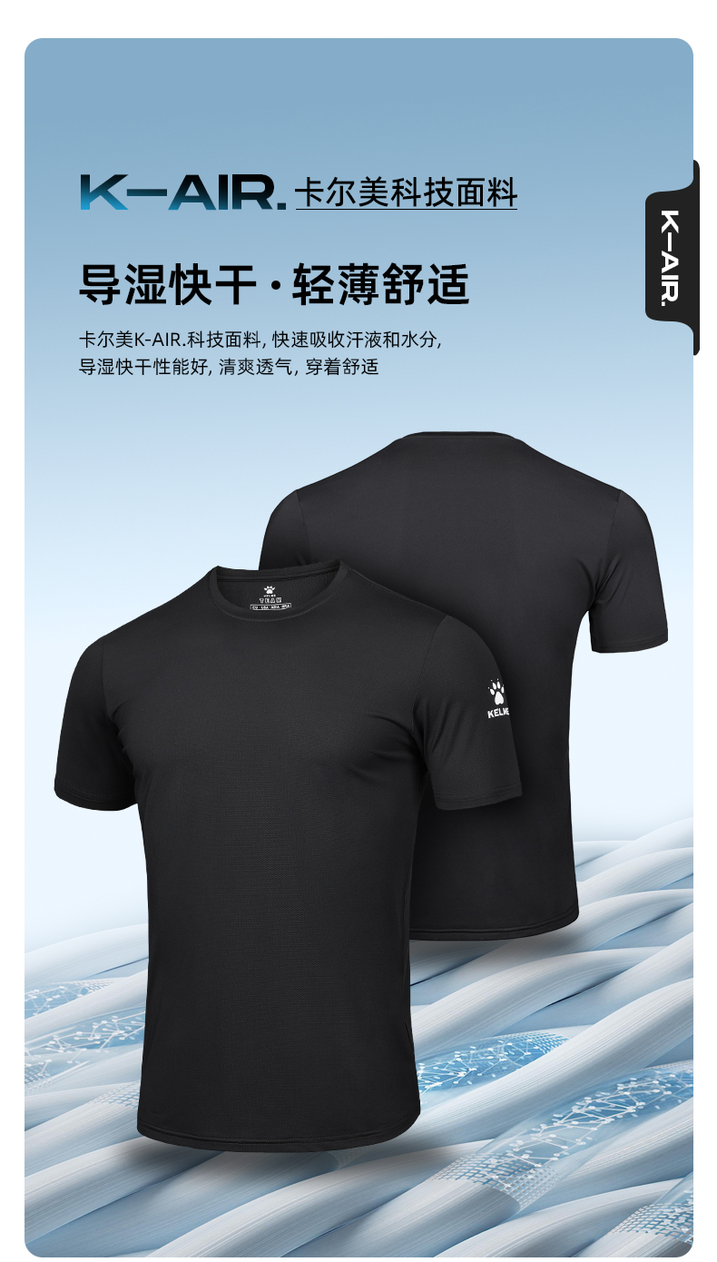 卡尔美夏季新款休闲圆领短袖透气健身上衣男女款