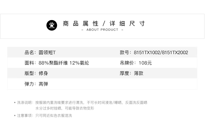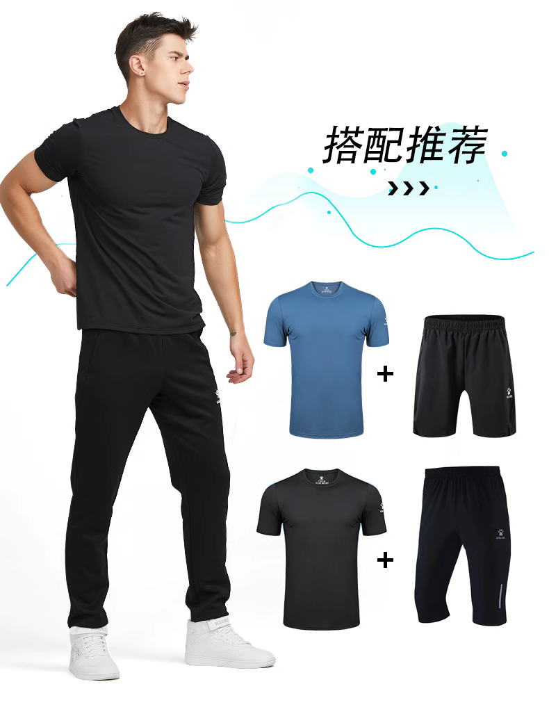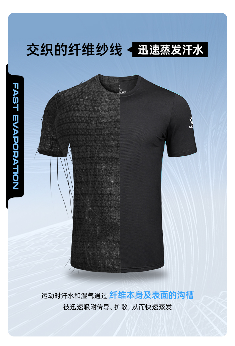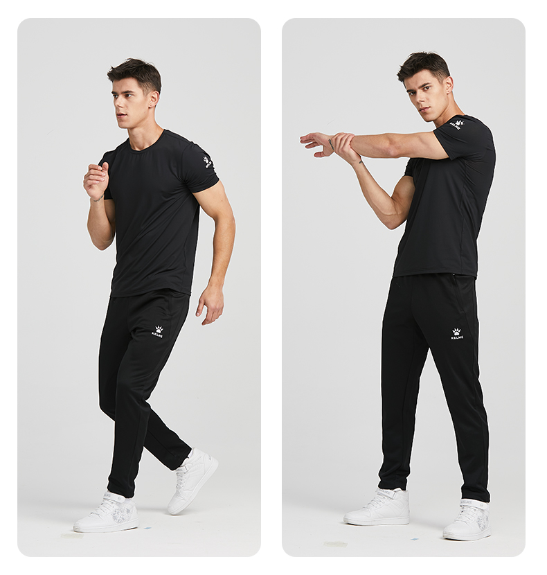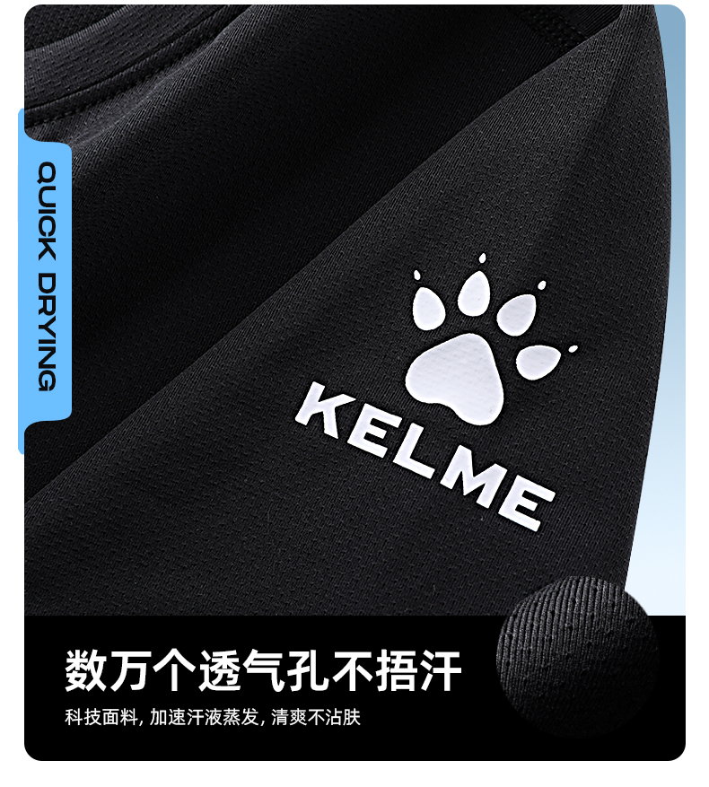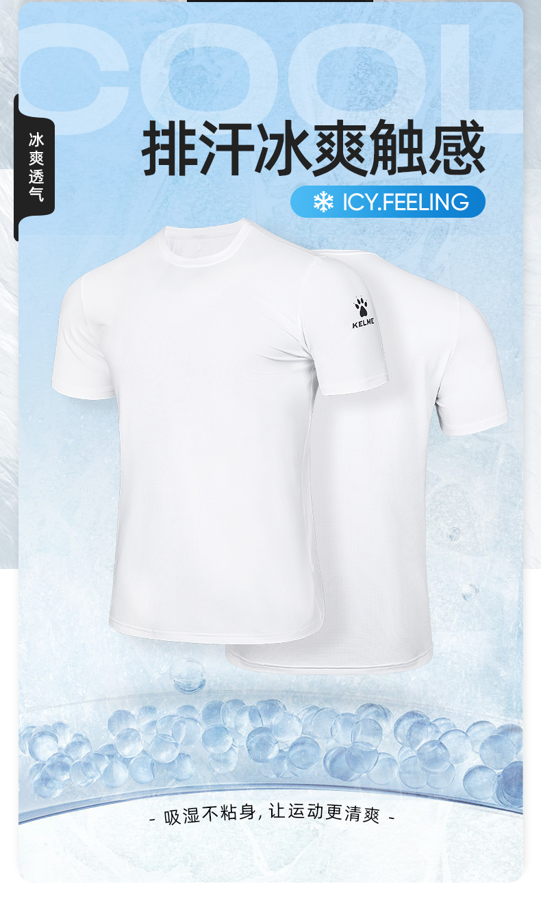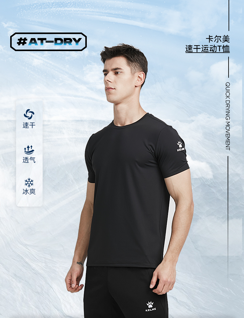 卡尔美夏季新款休闲圆领短袖透气健身上衣男女款