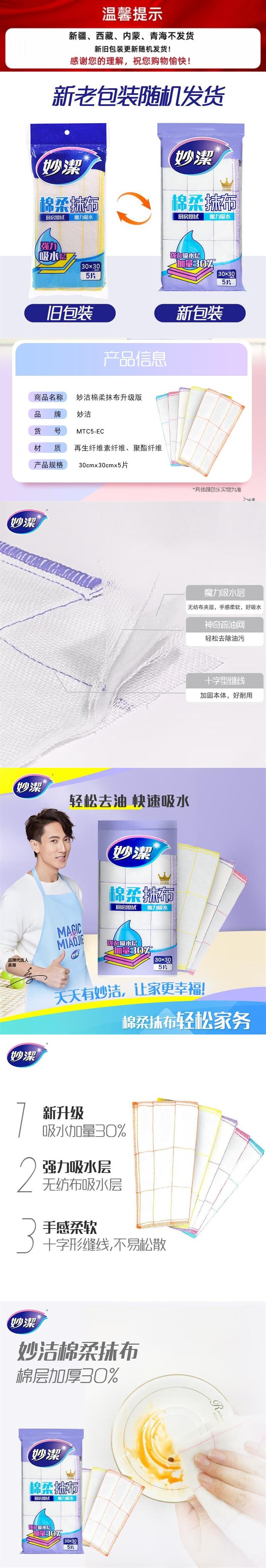 妙洁 棉柔抹布5片装*1包 MJMRB001B
