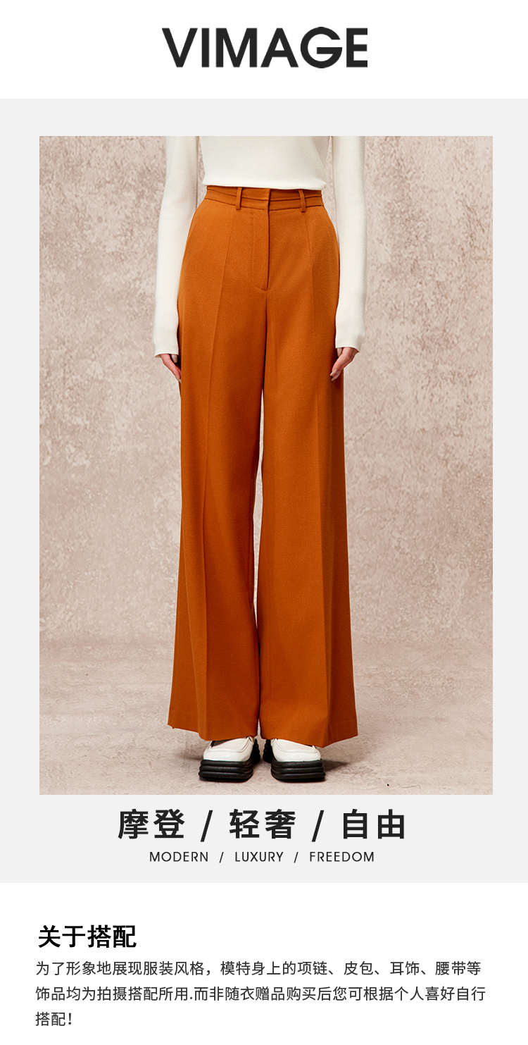 VIMAGE纬漫纪秋季新款阔腿显瘦高腰百搭休闲裤V2205825