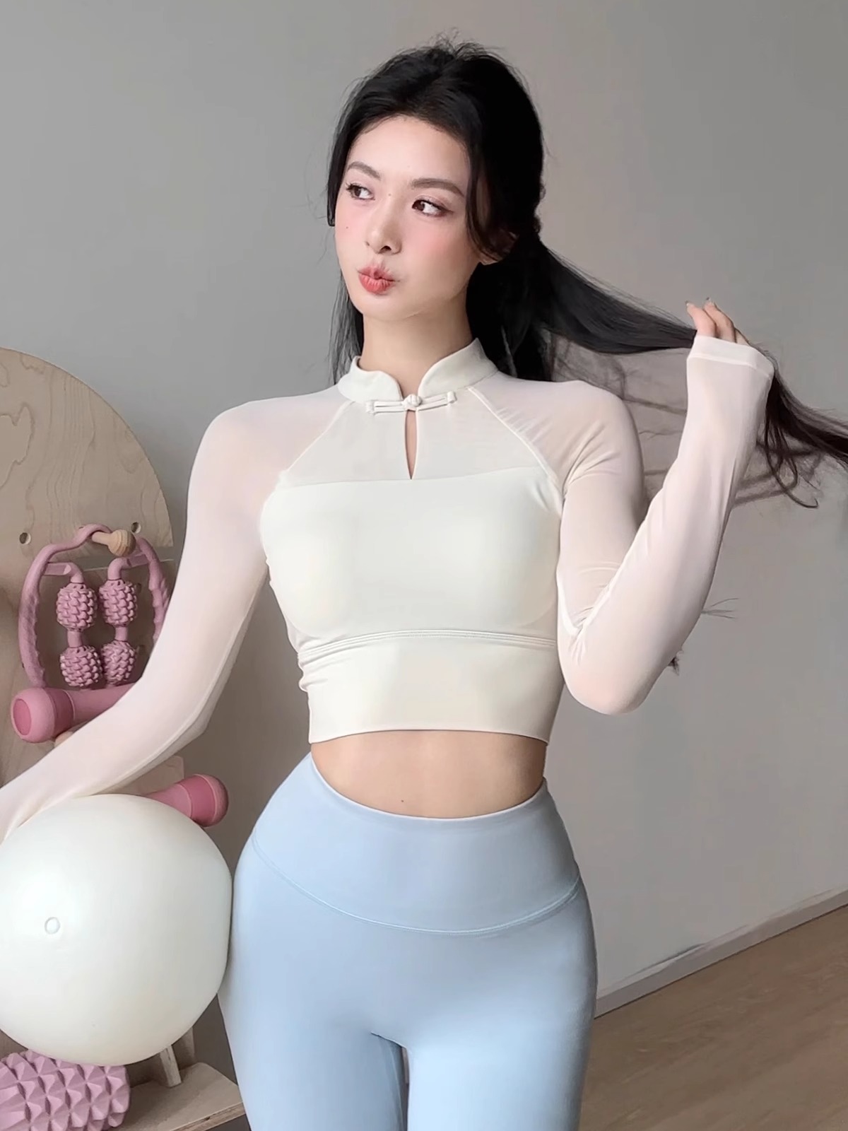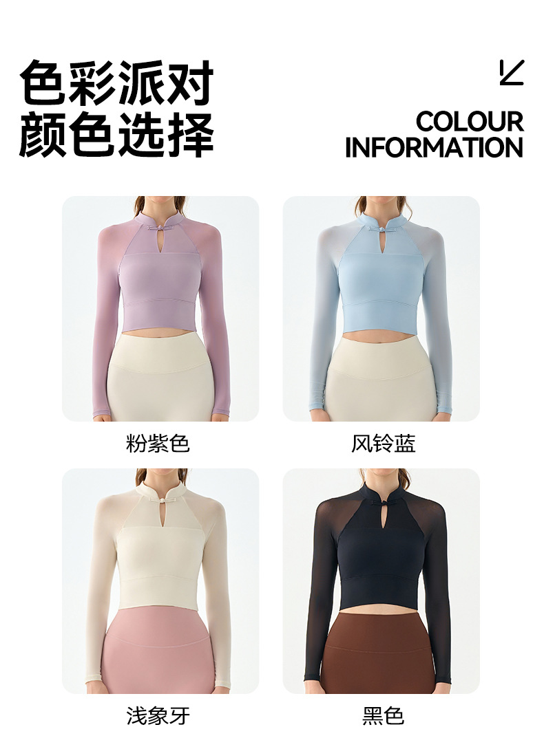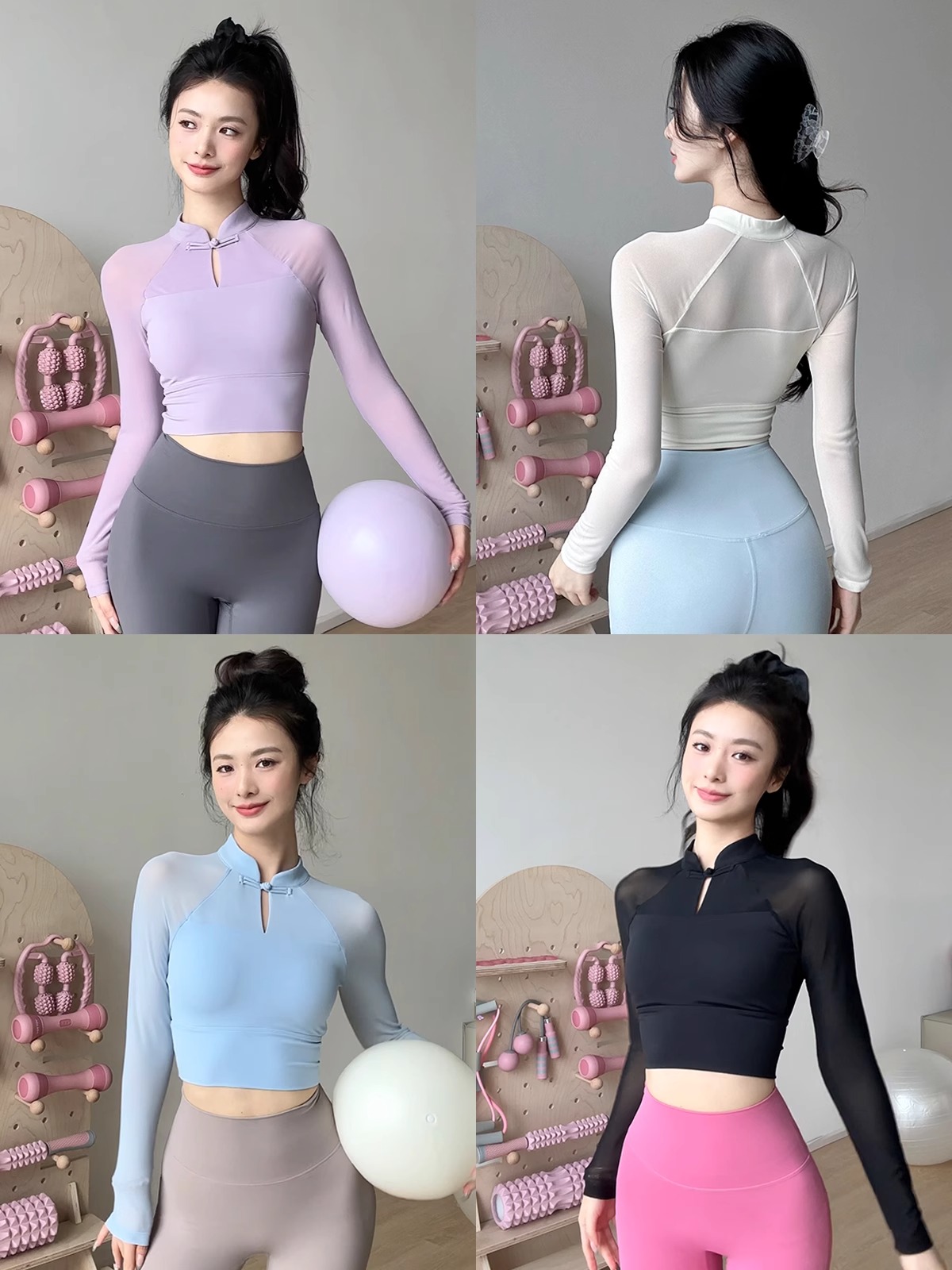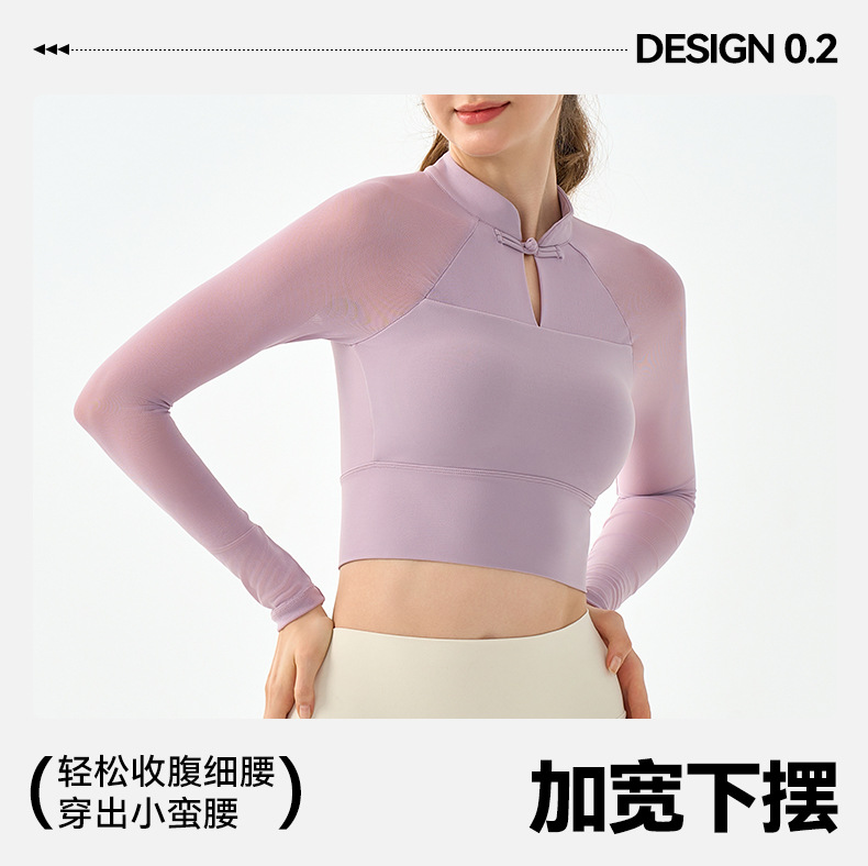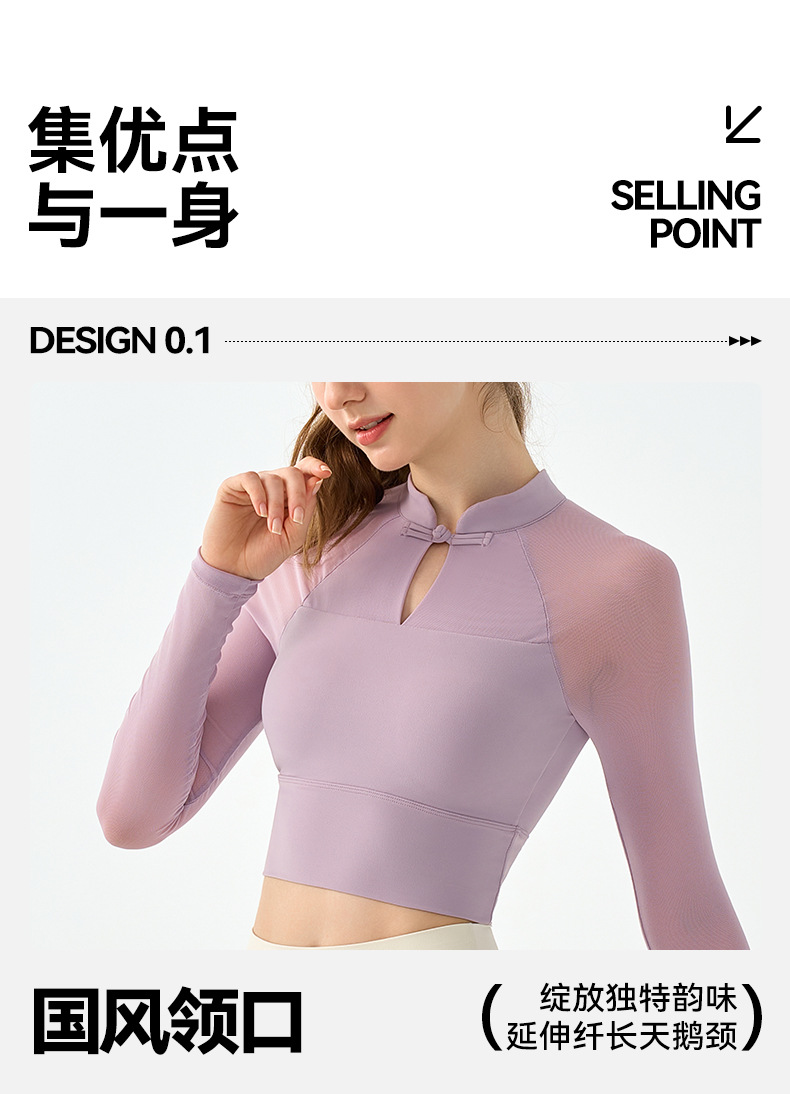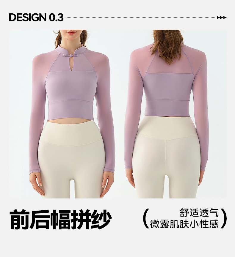 YOGACODE【火树银花系列】2024 网纱瑜伽服长袖带胸垫修身柔美运动罩衫DWLS142002