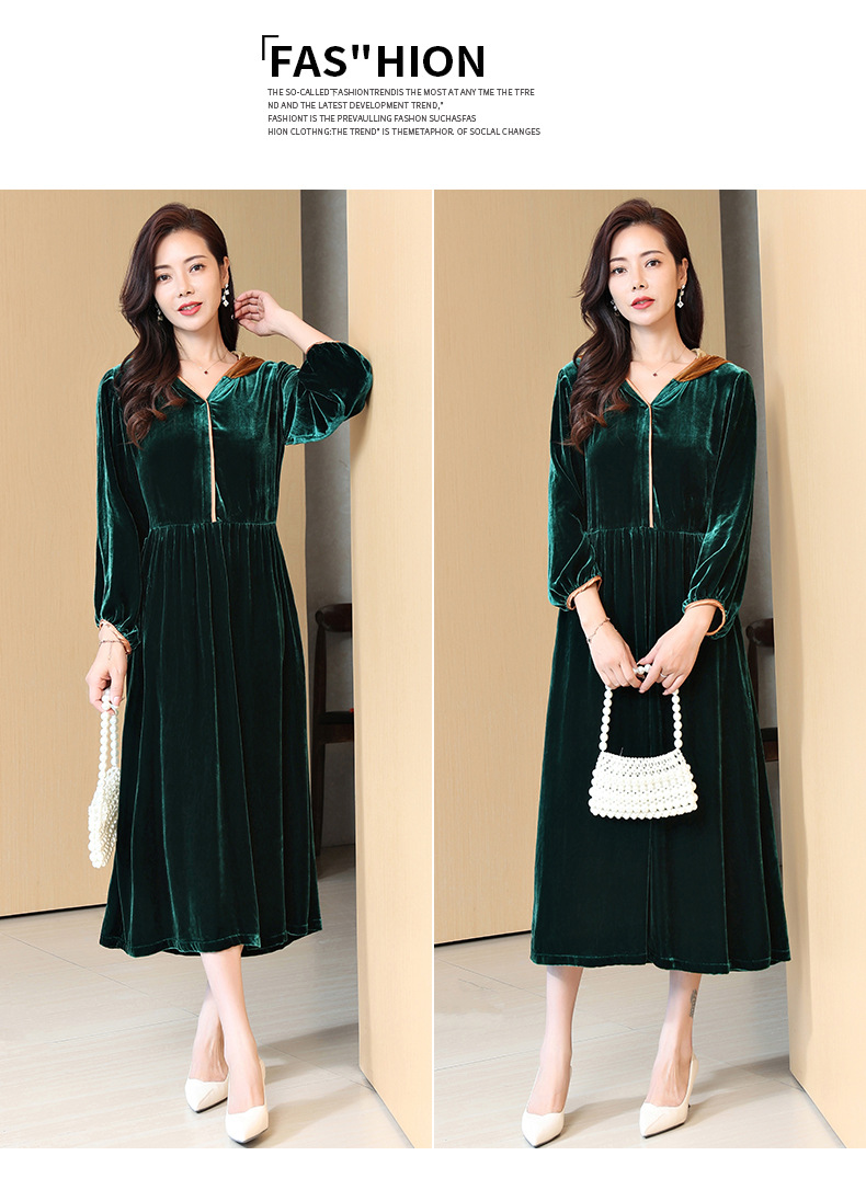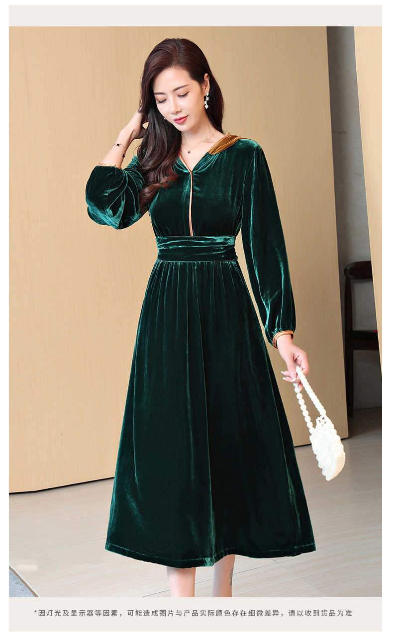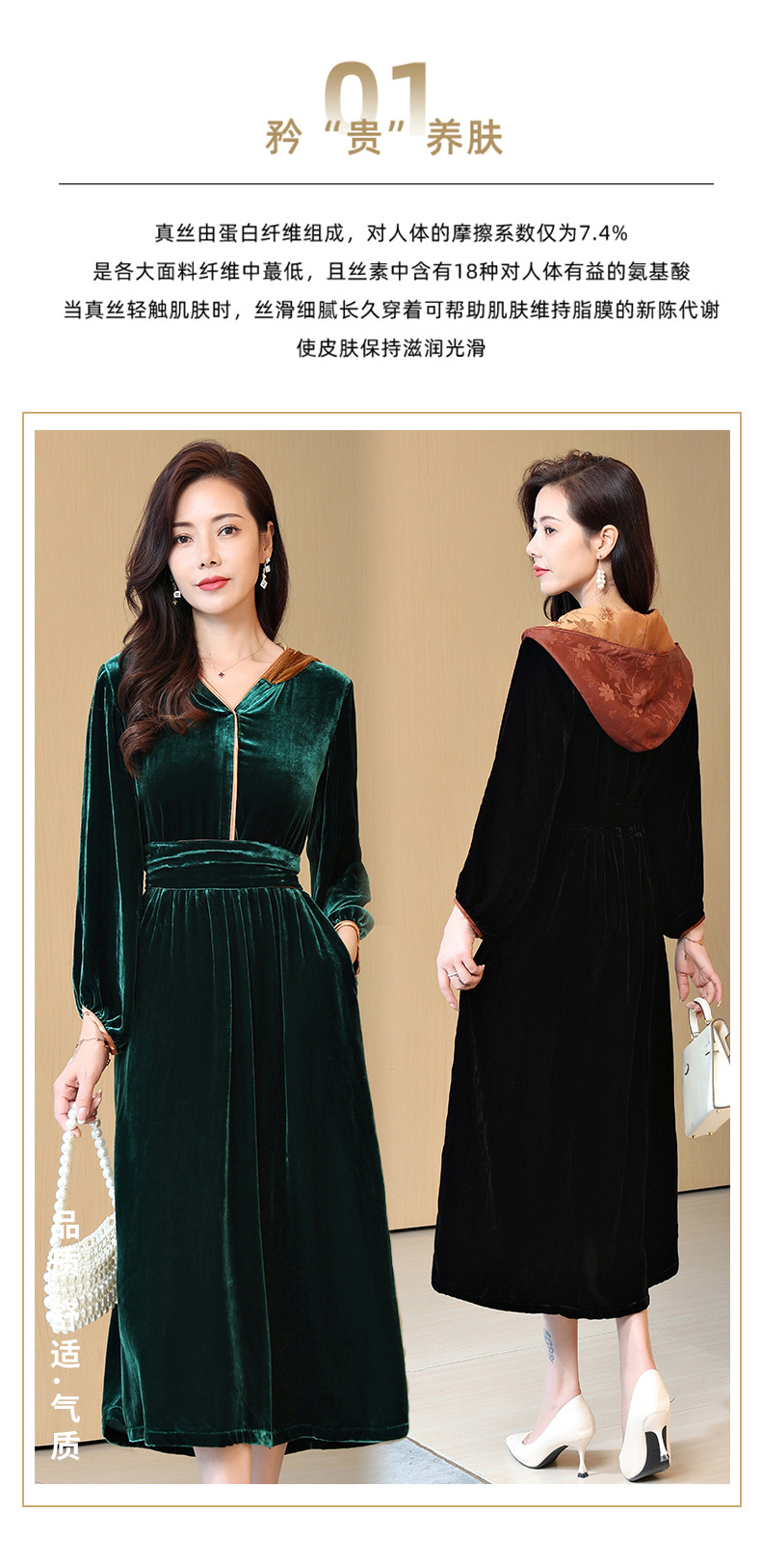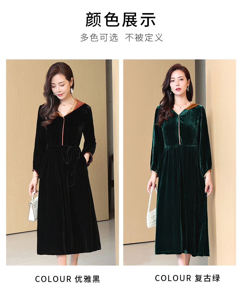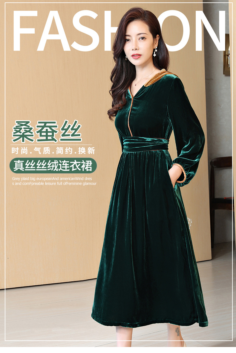 真丝绒连衣裙,洋气阔太太大码连衣裙ASE-971