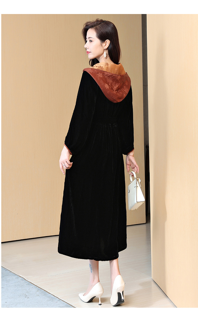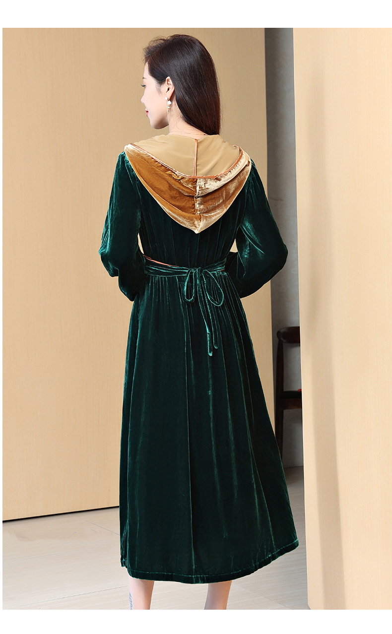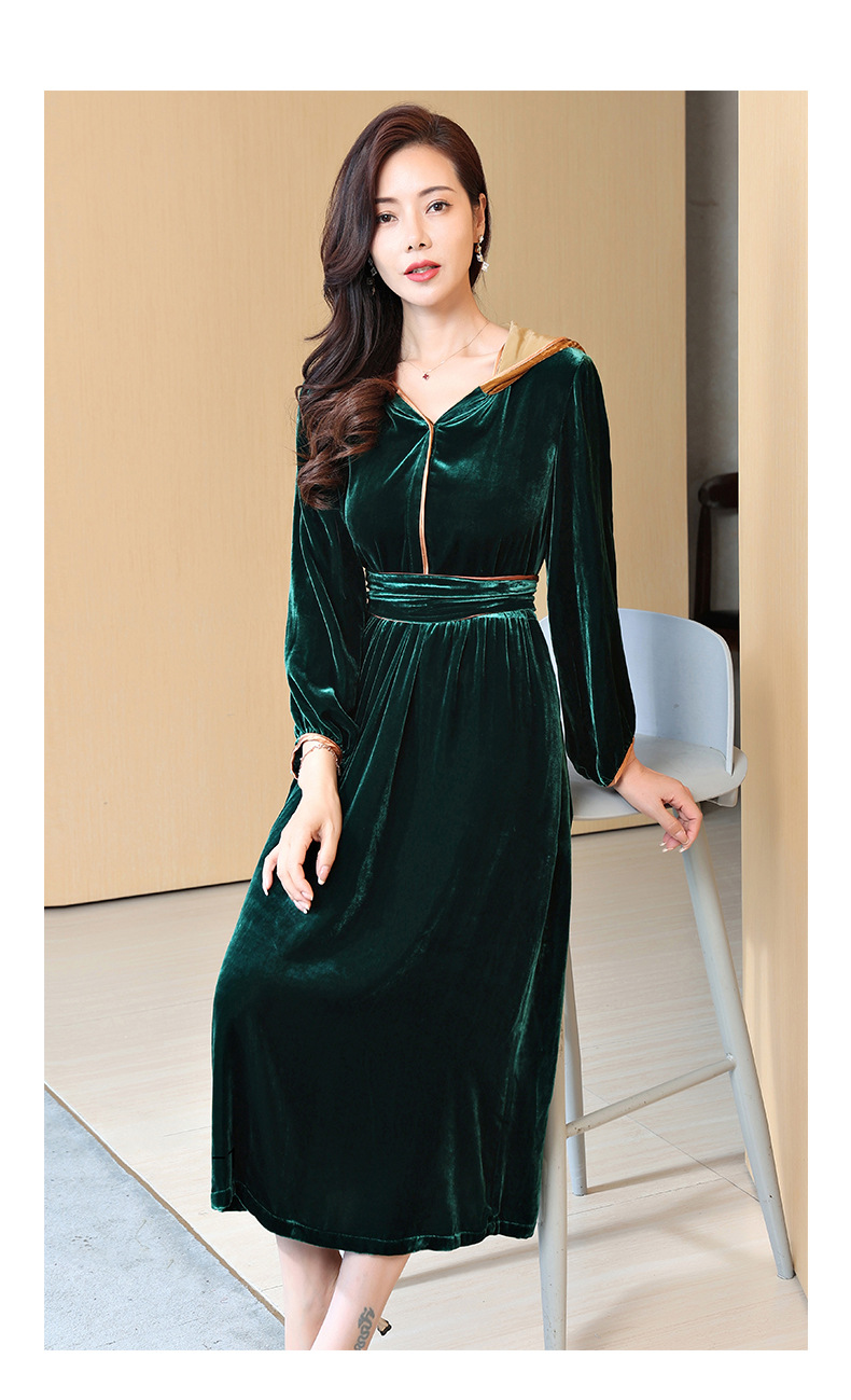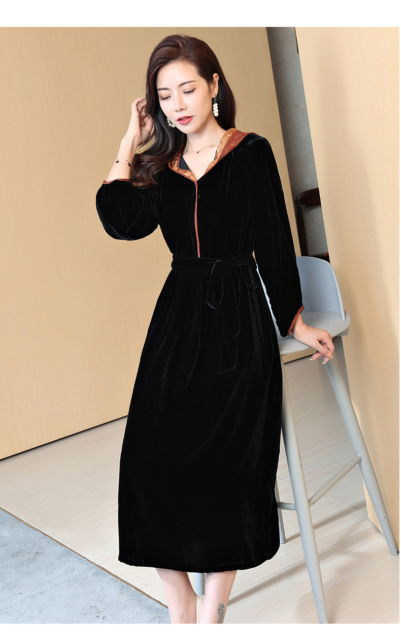 真丝绒连衣裙,洋气阔太太大码连衣裙ASE-971