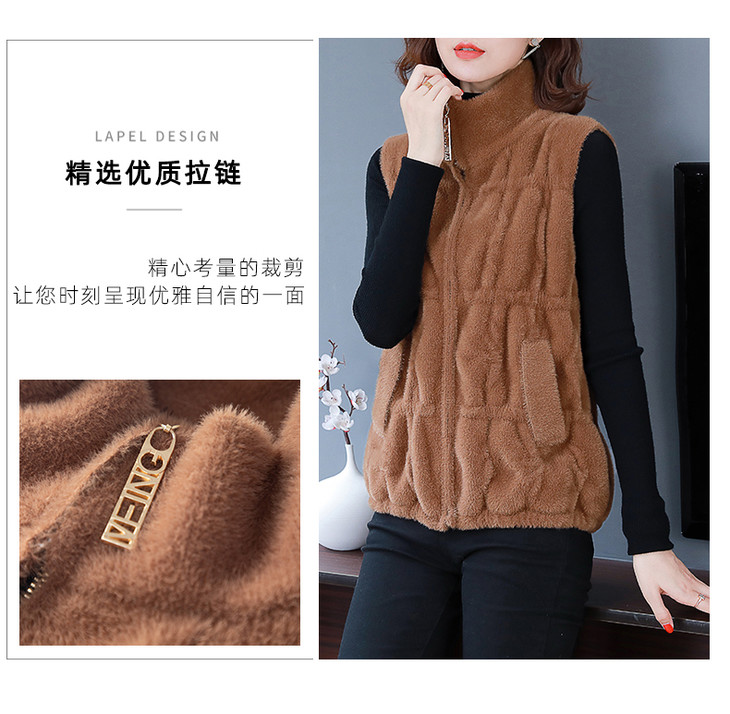 CC-22-8641宽松仿水貂绒针织开衫马甲背心