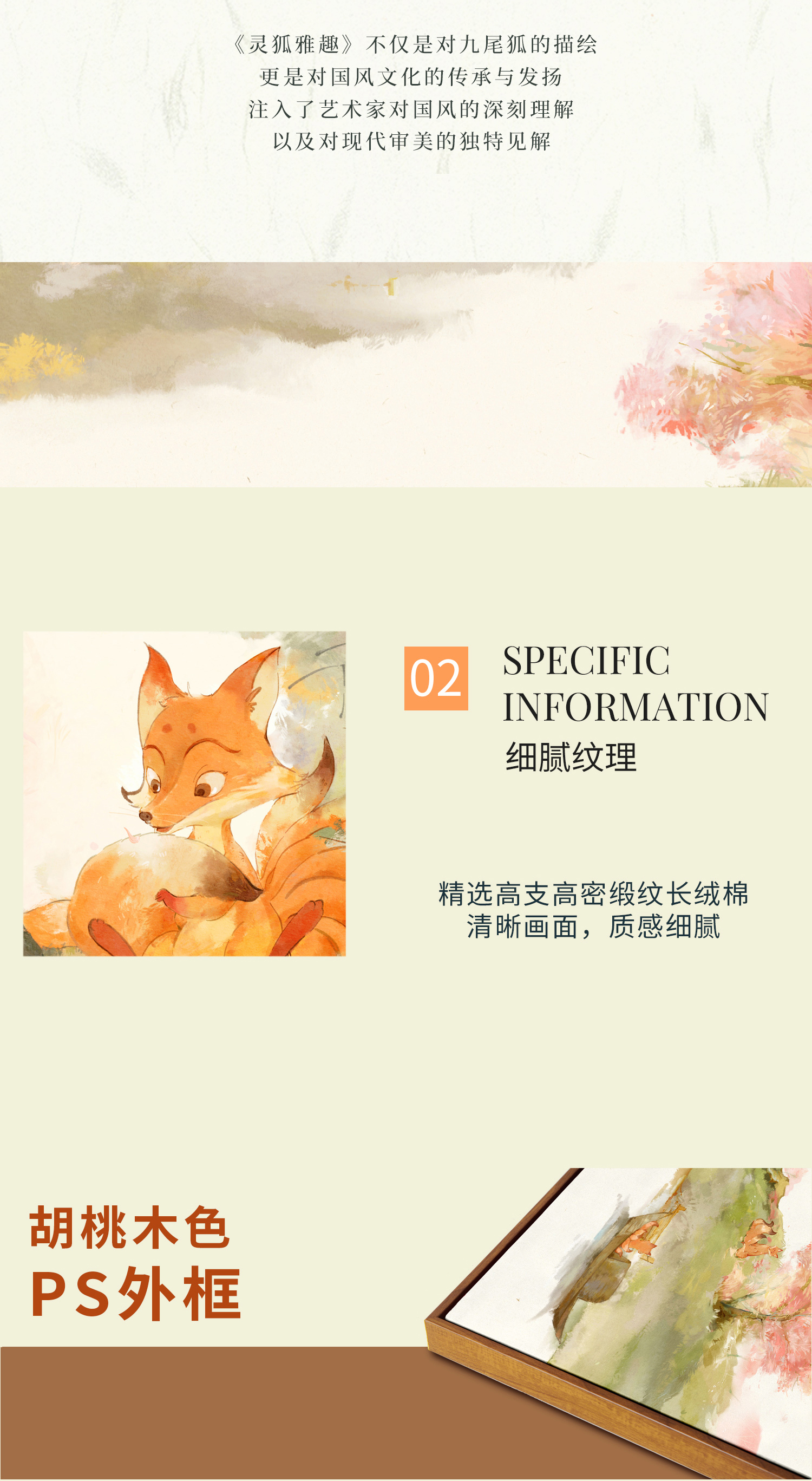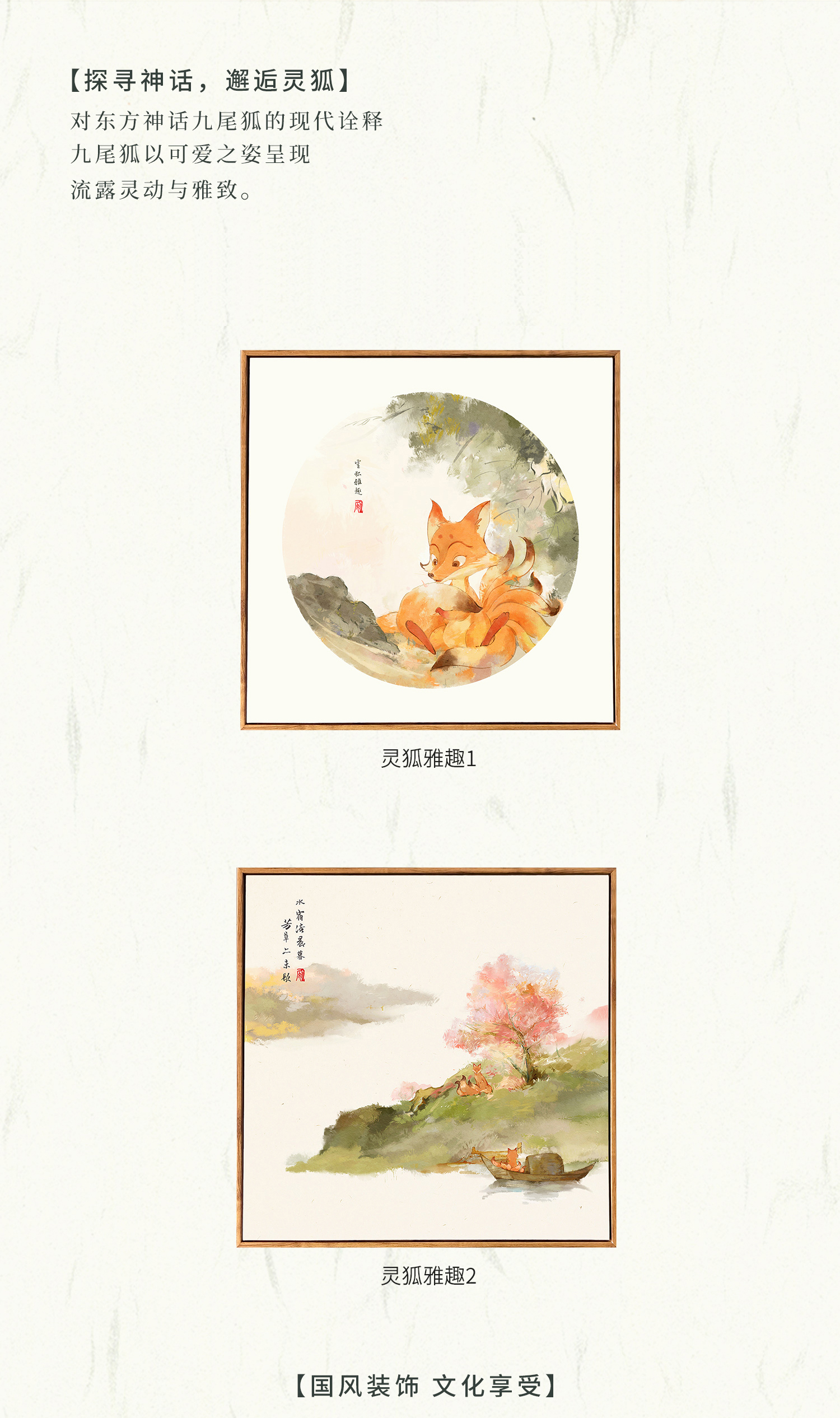 多喜爱高清布艺装饰画 山海瑞兽灵狐雅趣系列