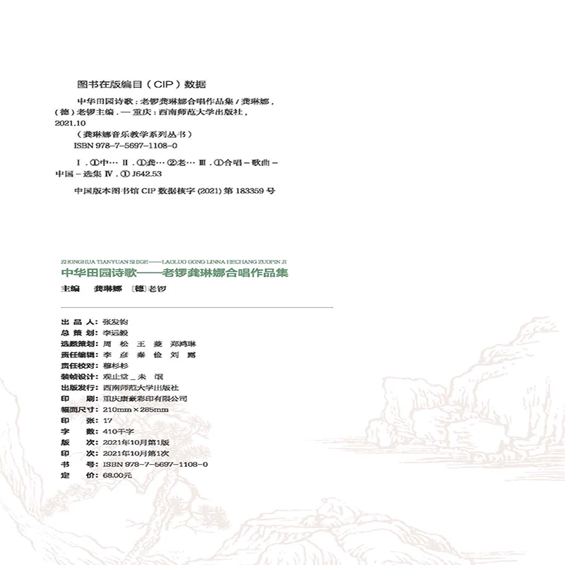*书名:中华田园诗歌——老锣龚琳娜合唱作品集 | *ISBN:978-7-5697-1034-2 |