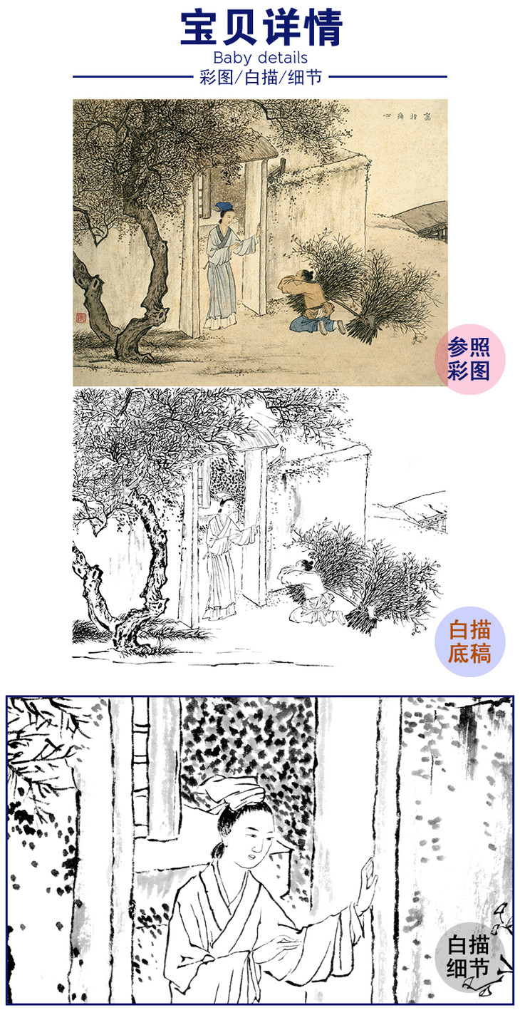 白描底稿-陈少梅二十四孝图-24孝-啮指痛心-CT03