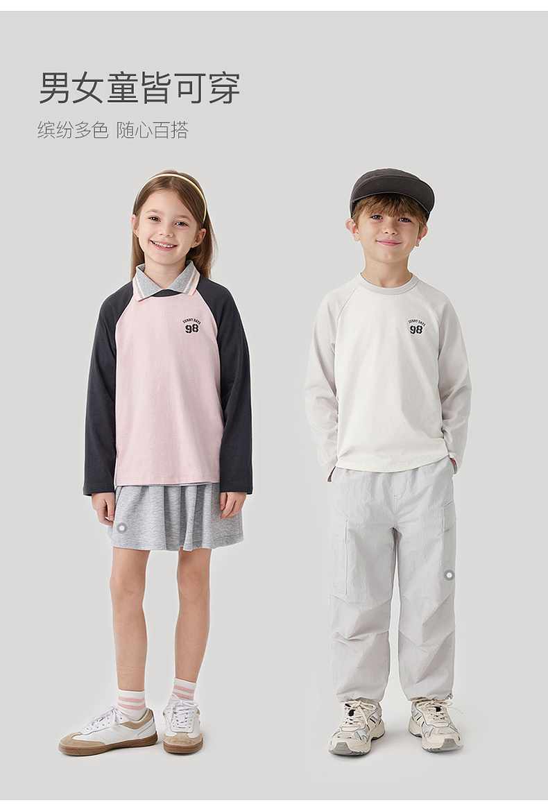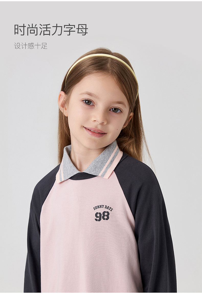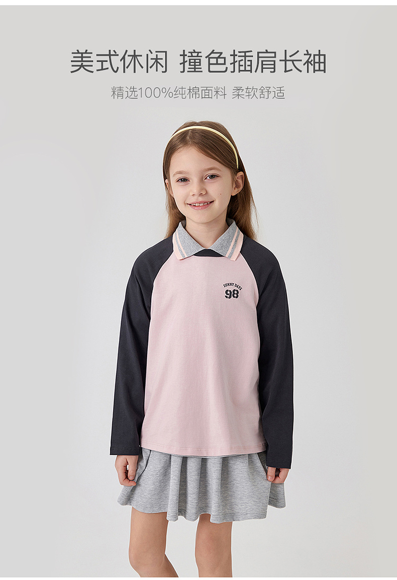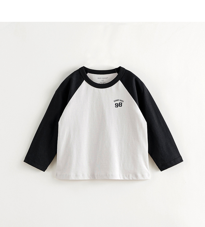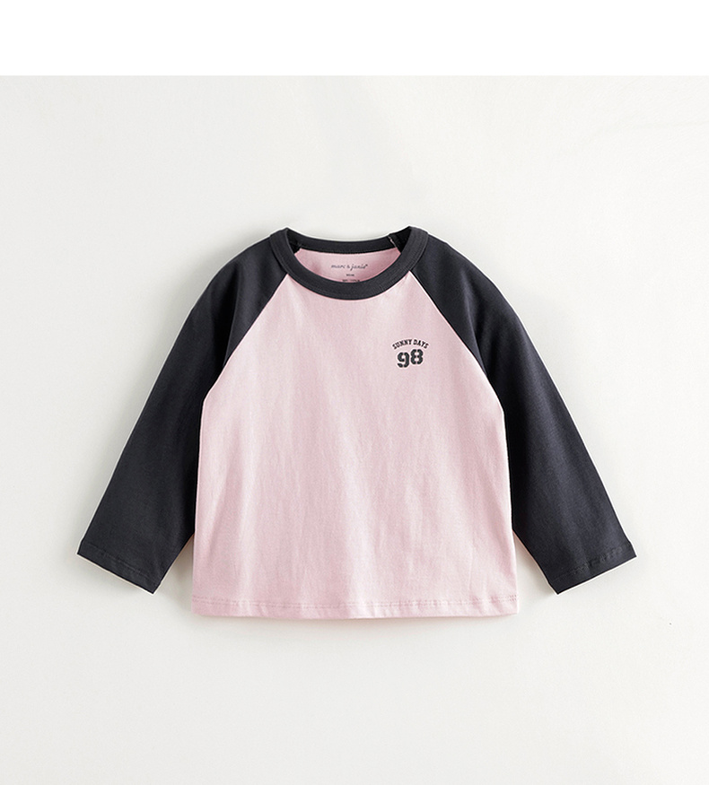 马克珍妮男女童美式宽松撞色字母长袖T恤儿童上衣秋装新款241277
