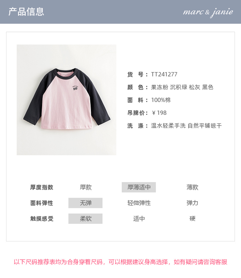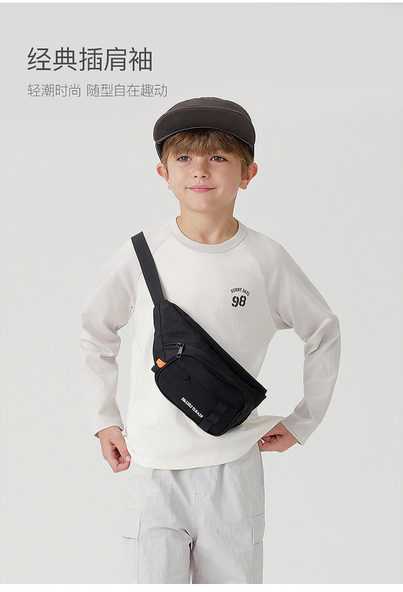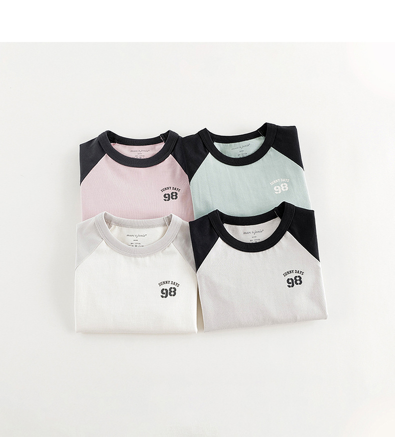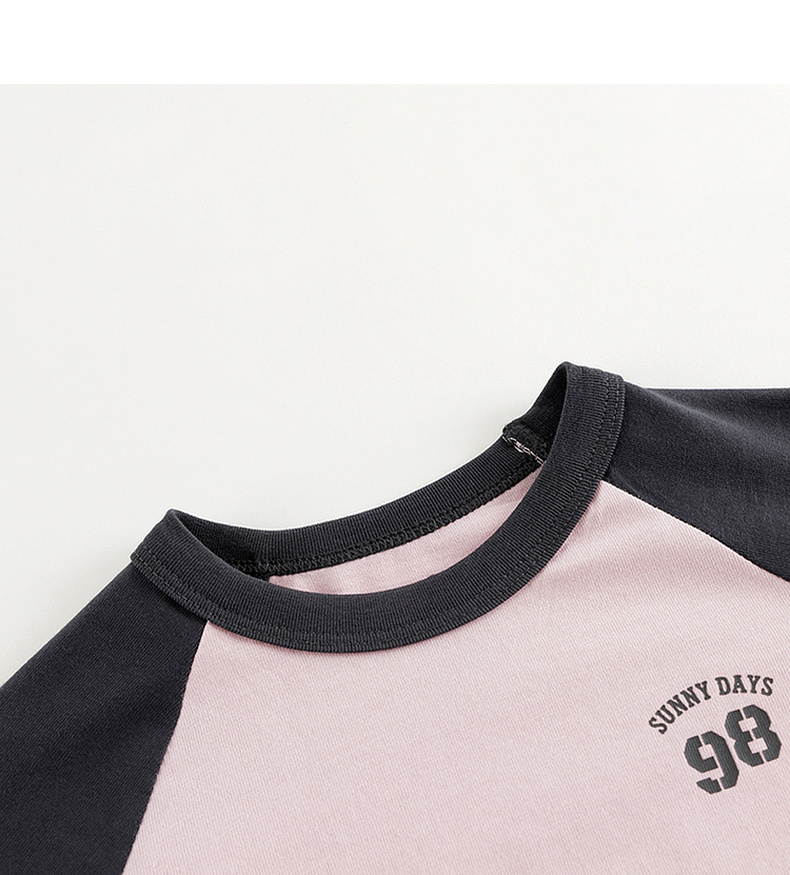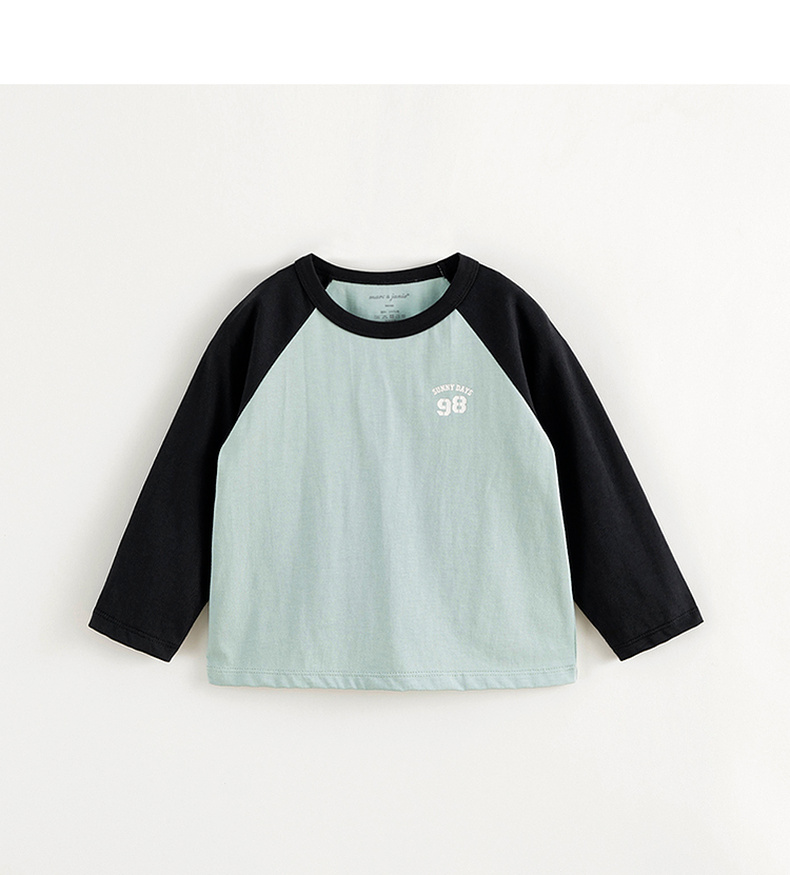 马克珍妮男女童美式宽松撞色字母长袖T恤儿童上衣秋装新款241277