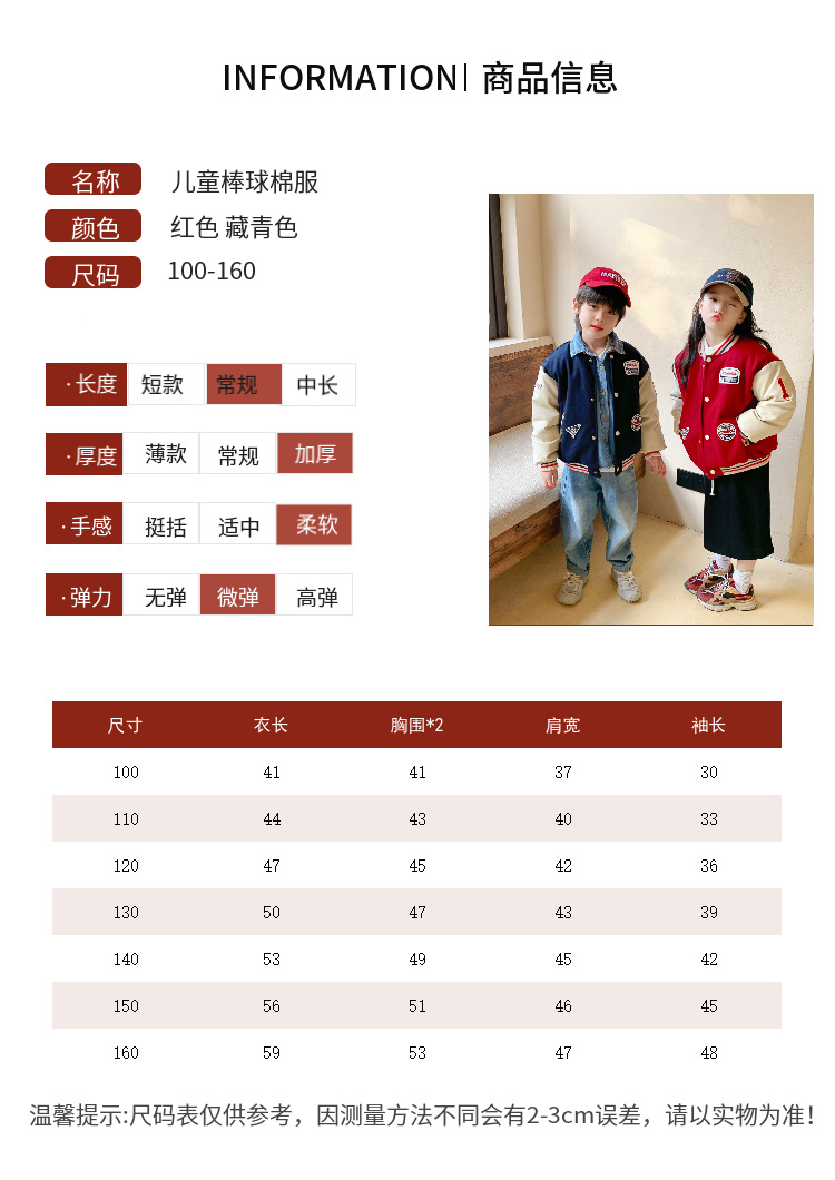 【儿童情侣外套!舒适时尚】新款儿童字母棒球服男童女童,棉服中大童夹棉外套宝宝秋冬棉袄,舒适好穿 呵护到位,质感亮眼 洋气精致