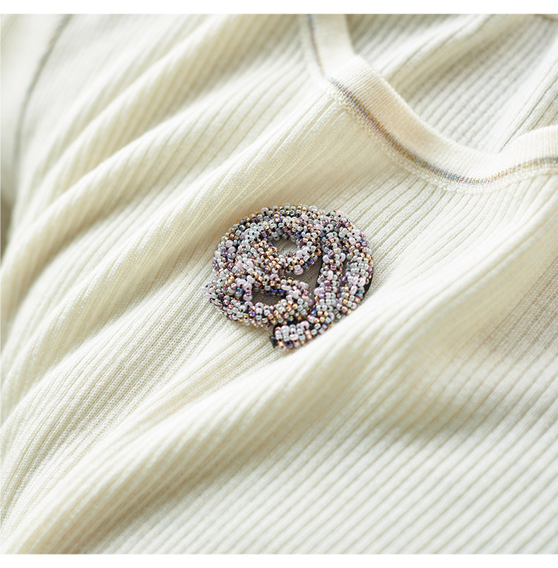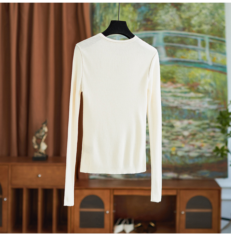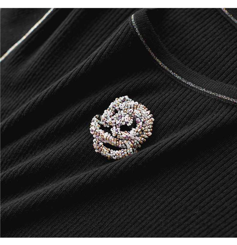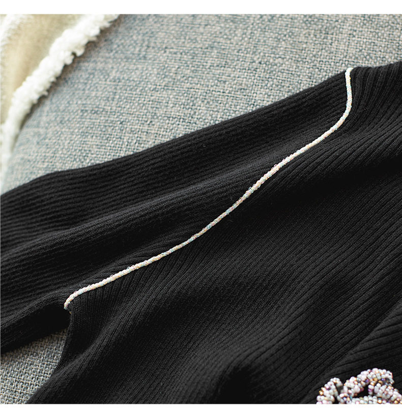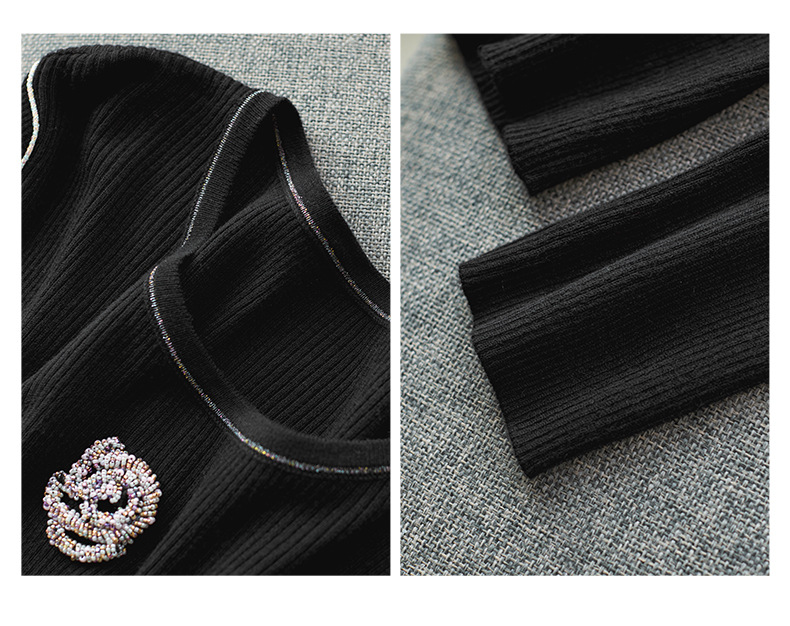 【高货wl】全新升级【铂金会员183/天猫249/差价66】(02920) 洛诗琳时尚优雅圆领山茶花修身针织衫上衣女春秋打底衫