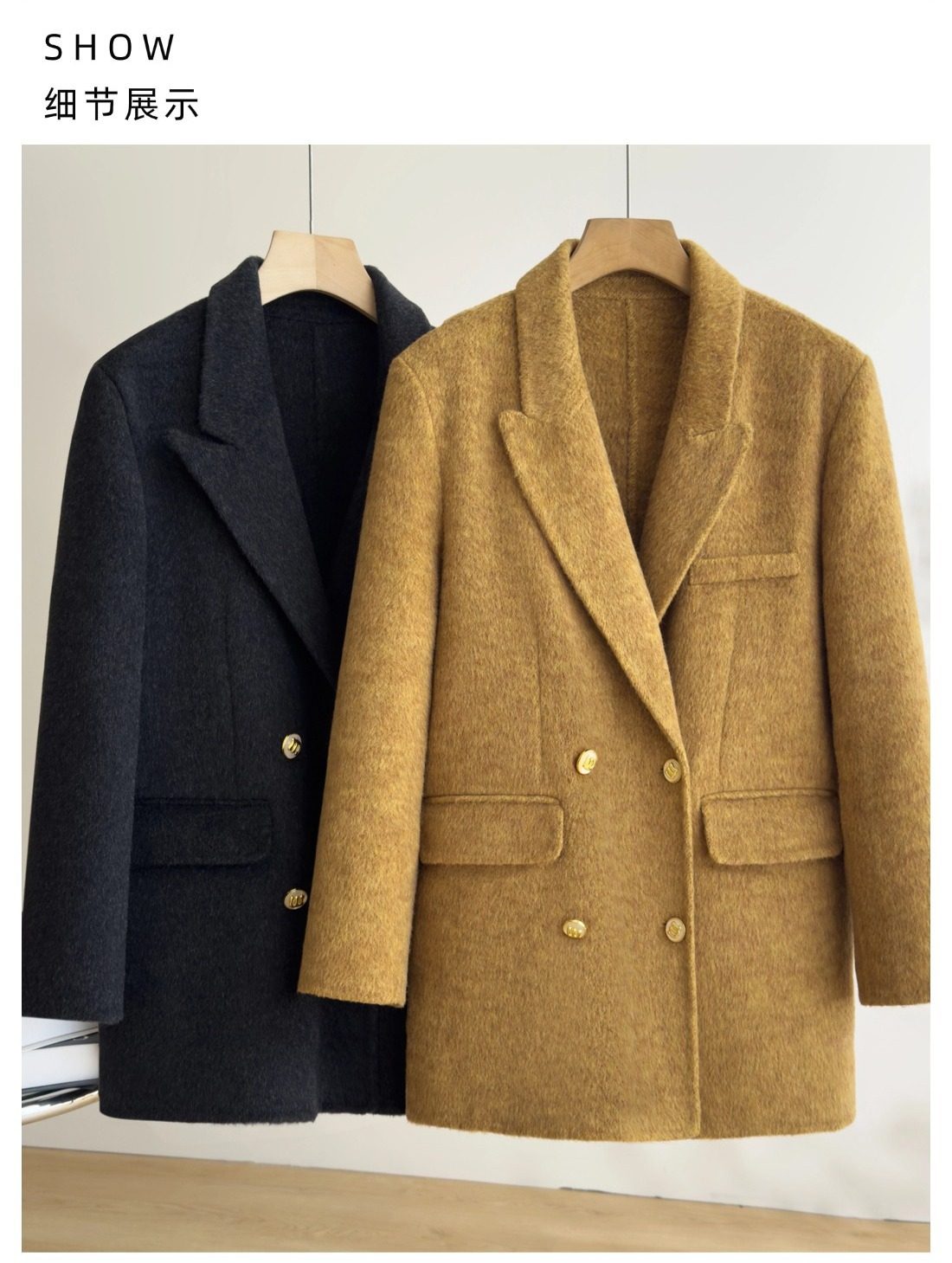 「自」全新升级【铂金会员477/天猫649/差价172】(12320)洛诗琳高级感中长羊毛外套2025秋冬新款宽松双面毛呢外套女