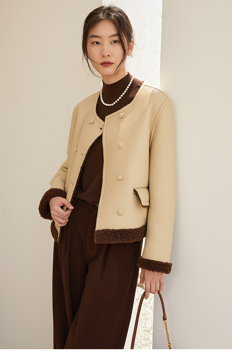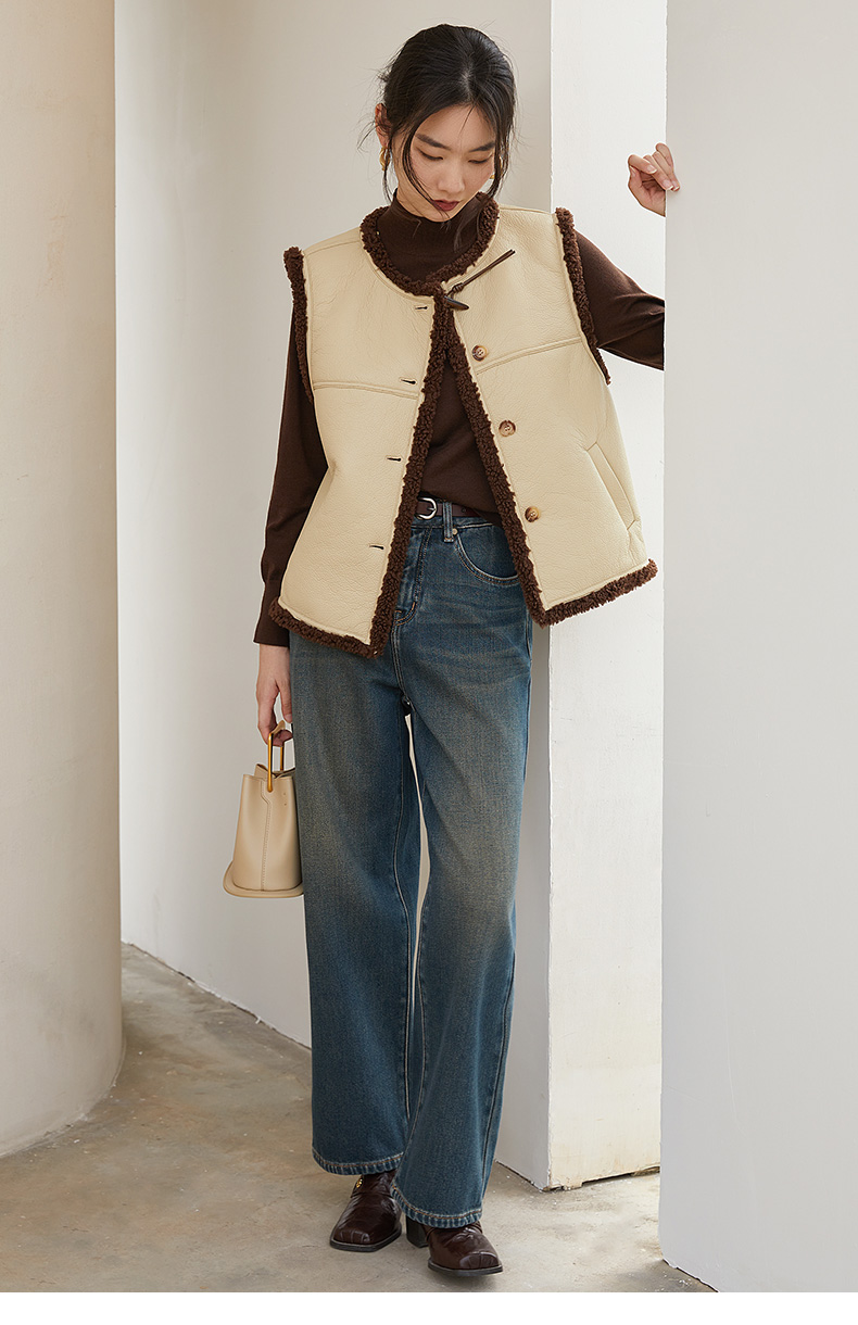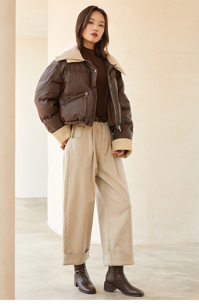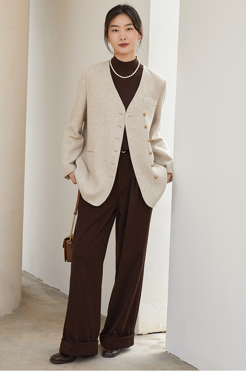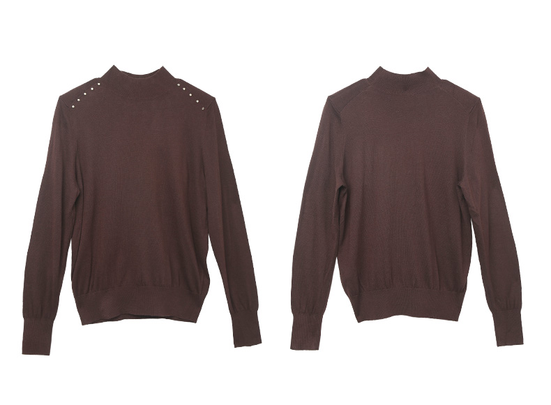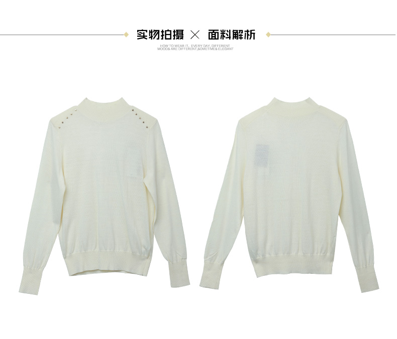 米白色半高领铆钉装饰针织衫 复古风灯笼袖宽松毛衣 春秋季小众设计感显瘦女式上衣
