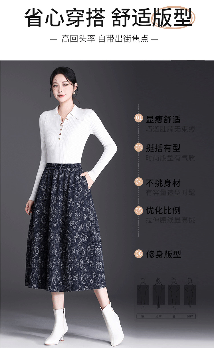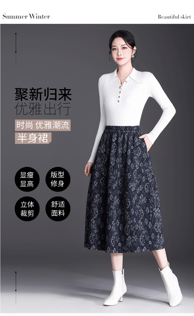 QYM 792-Y时尚优雅半身裙松紧高腰印花裙 商品图4