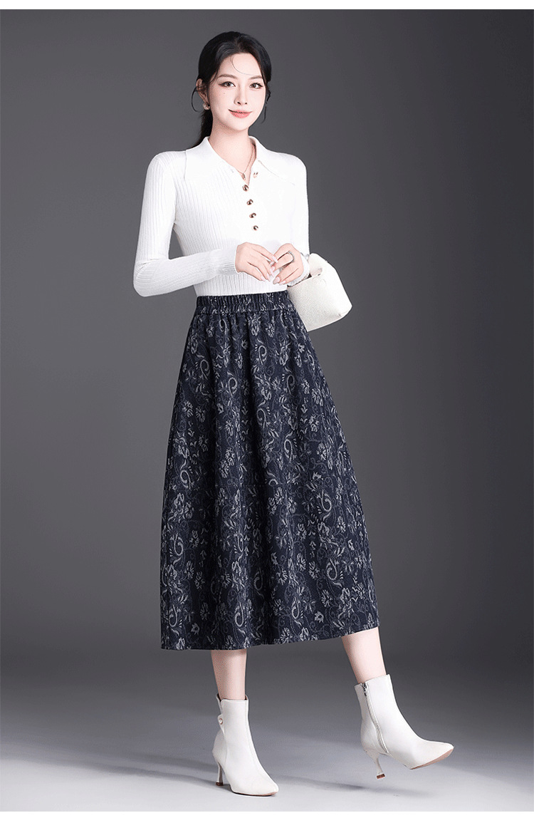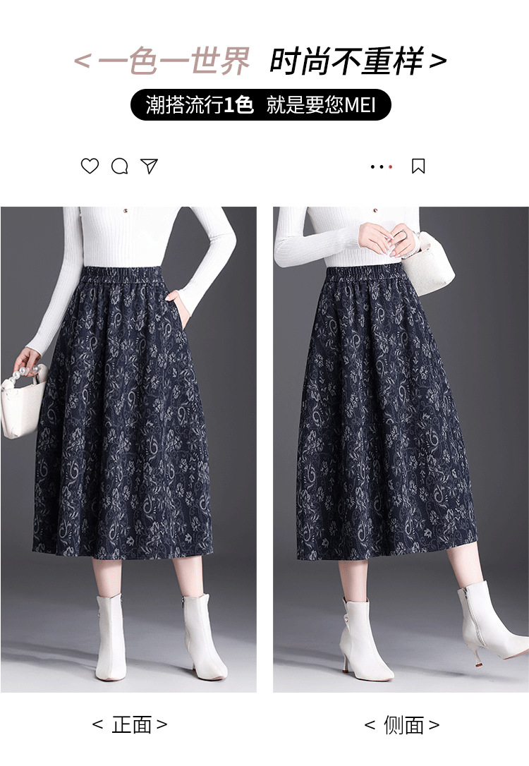 QYM 792-Y时尚优雅半身裙松紧高腰印花裙 商品图1