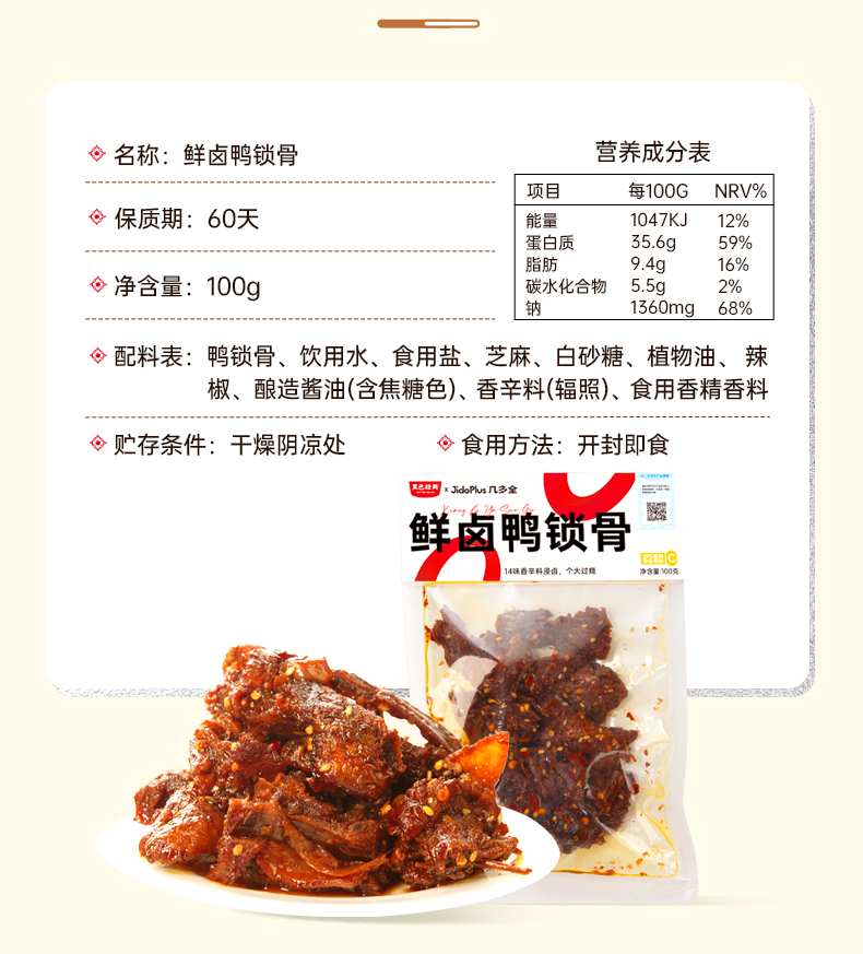 【鲜食】黑色经典x几多全 鲜卤鸭锁骨 100g/袋 先烤后卤 够爽够味