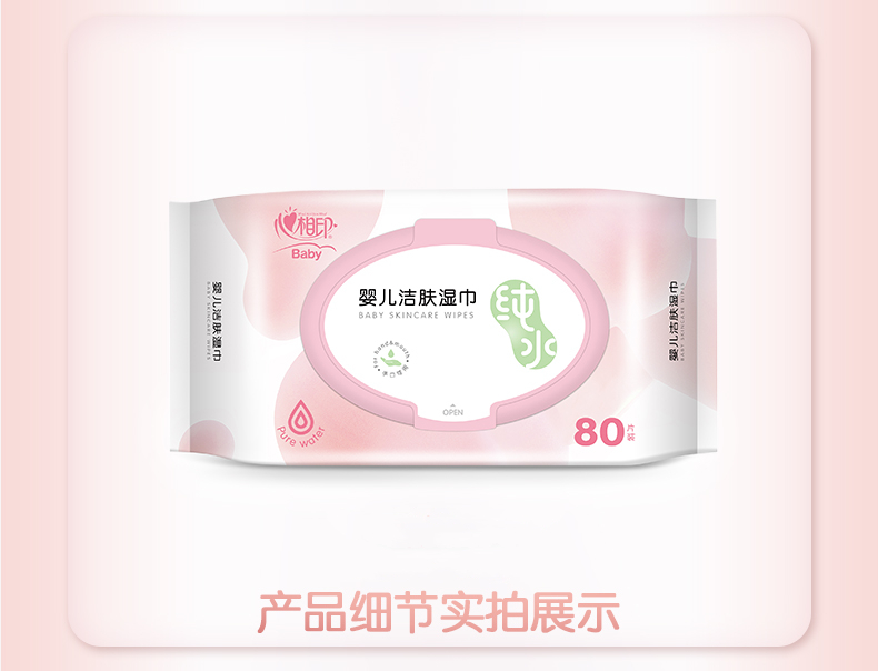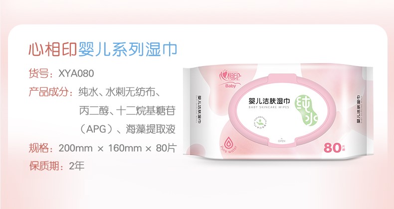 心相印婴儿洁肤柔湿巾80片装(纯水)粉色XYA080