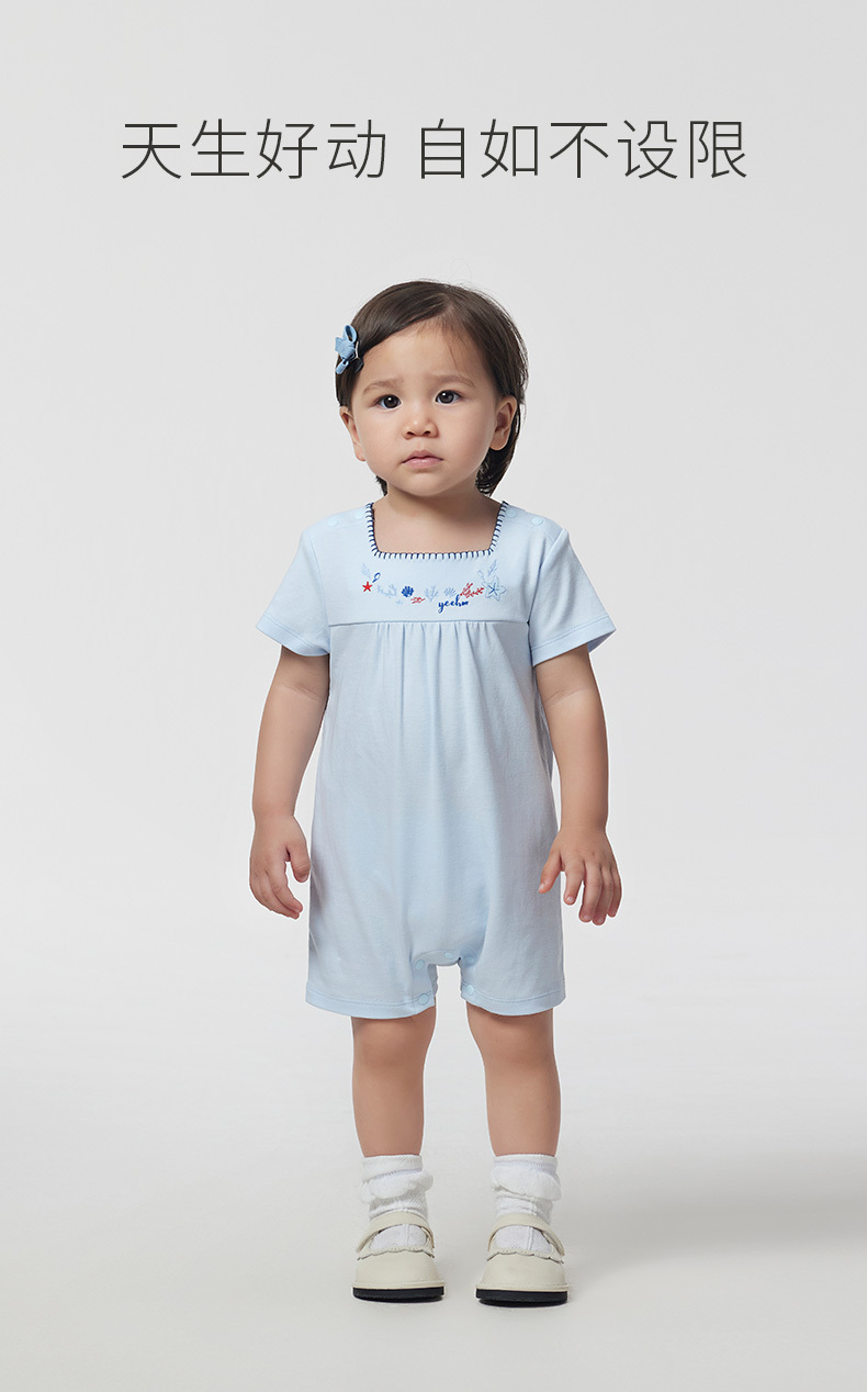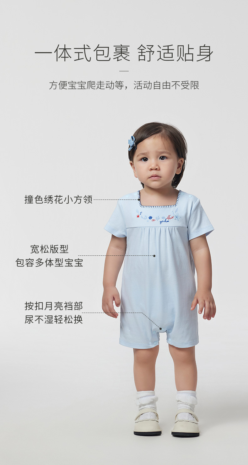 【商场同款】英氏婴儿连体衣夏装女宝宝纯棉短袖外出哈衣爬服
