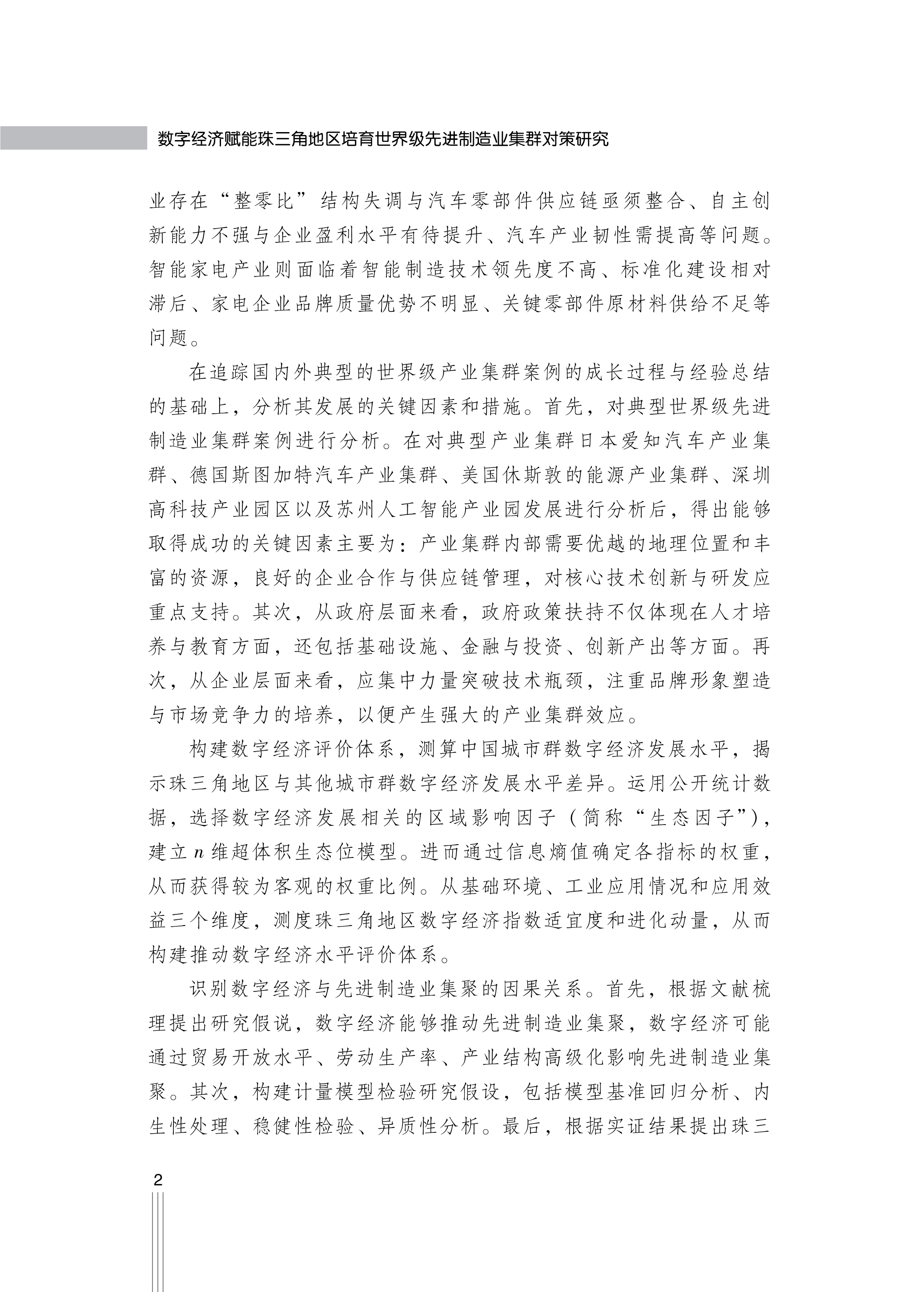 数字经济赋能珠三角地区培育世界级先进制造业集群对策研究