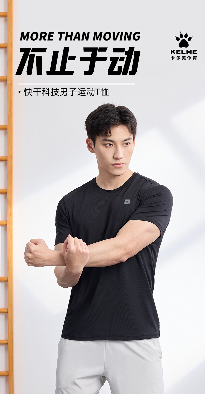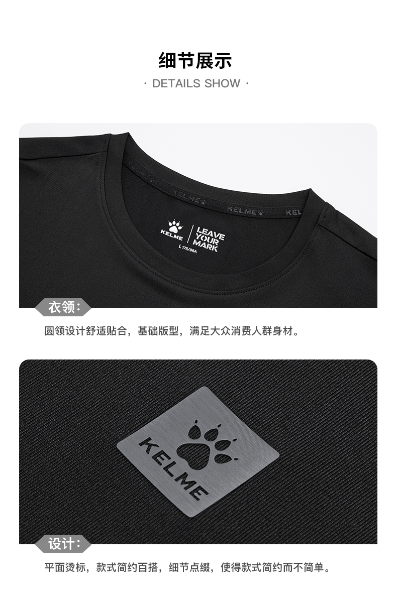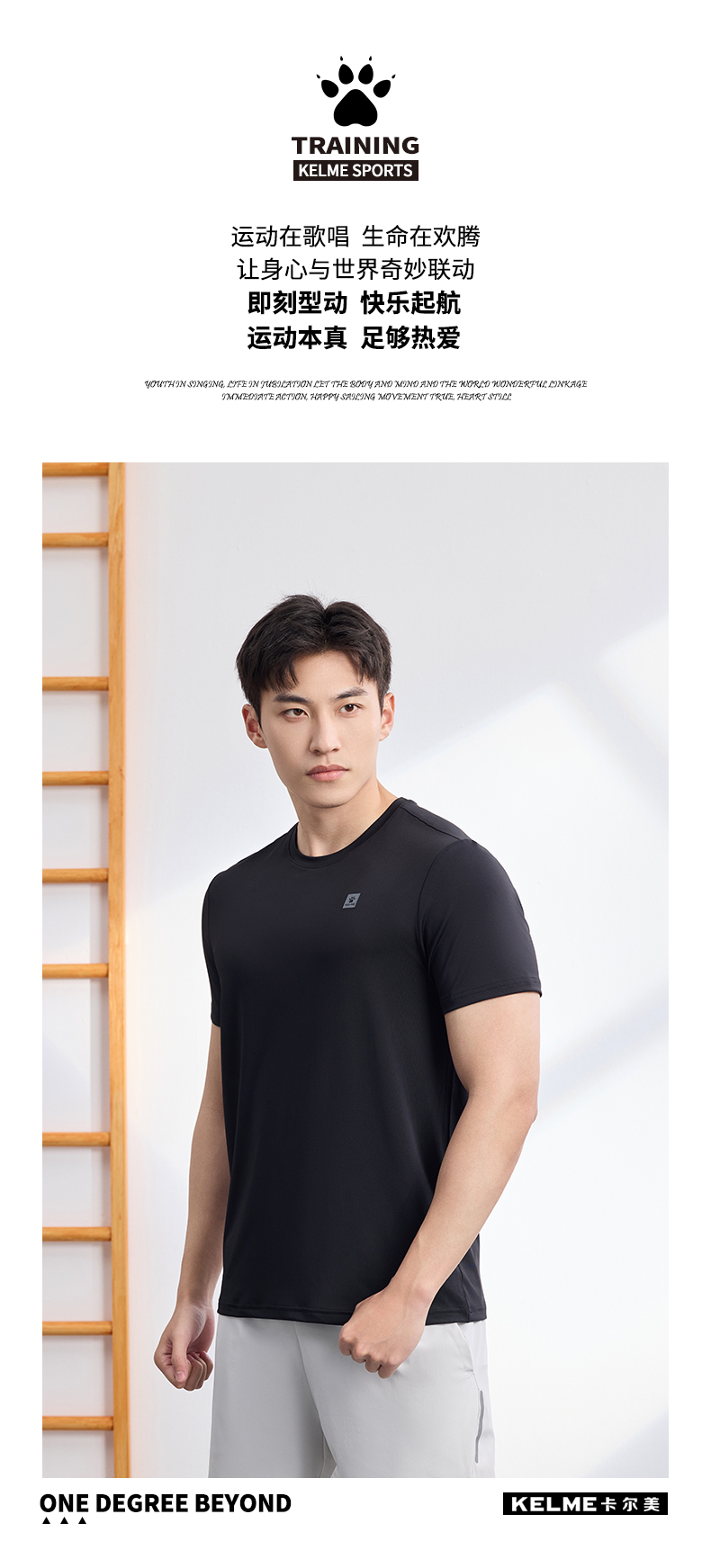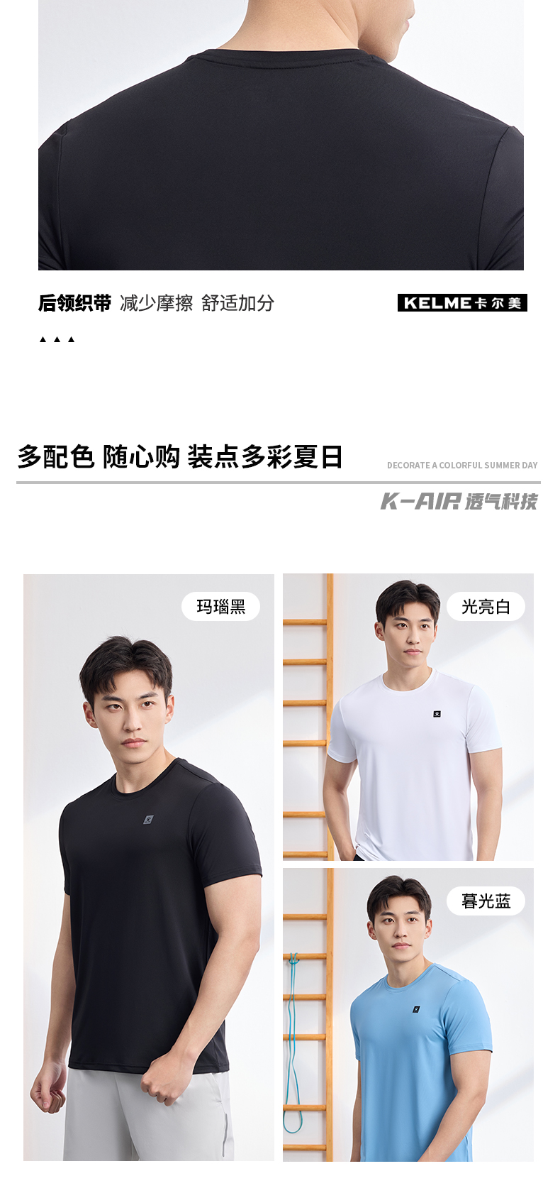 KELME卡尔美运动T恤男夏季跑步训练健身服速干圆领短袖上衣