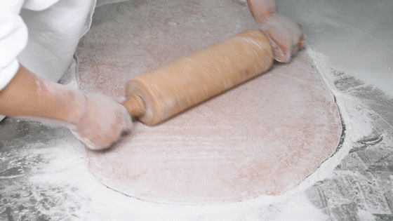 经过拍、压、擀、碾、折、拂、扫、切等多道工序,最终制成薄如纸状,厚度只有2毫米的皮。