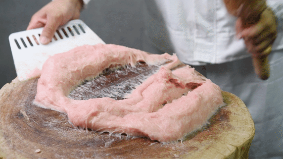 长时间的手工敲打会让燕皮格外有劲道!