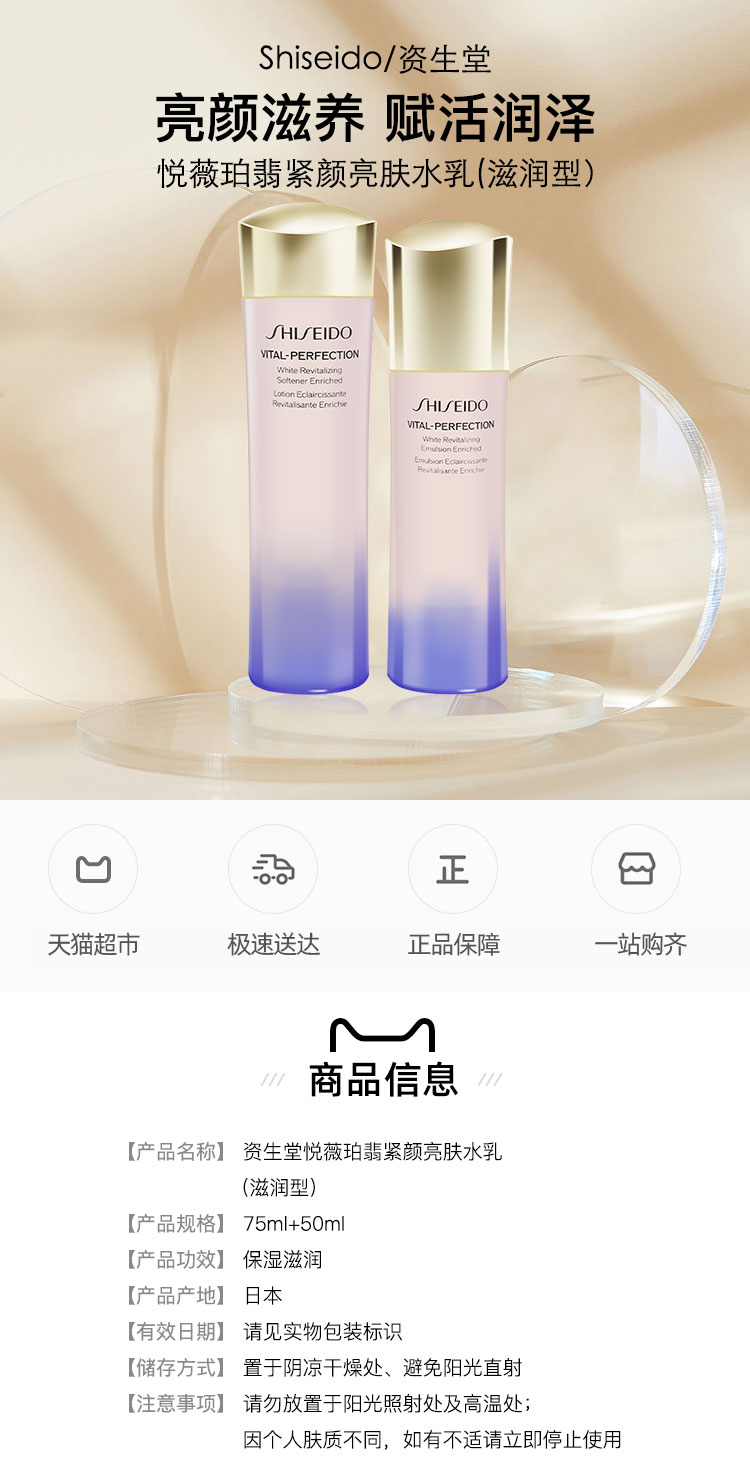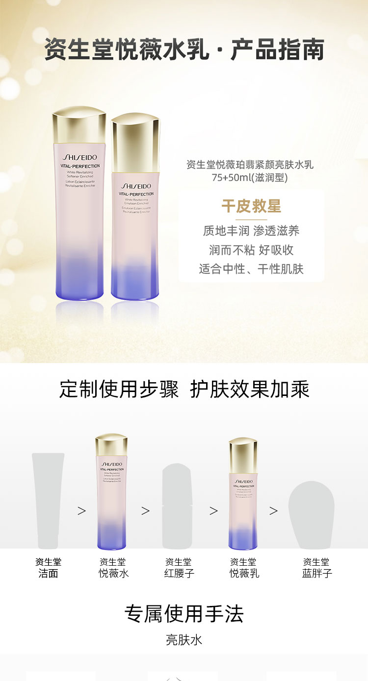 【热卖水乳套 】资生堂(SHISEIDO)悦薇珀翡紧颜亮肤水乳套装 水75ml+乳50ml 滋润型(新版)