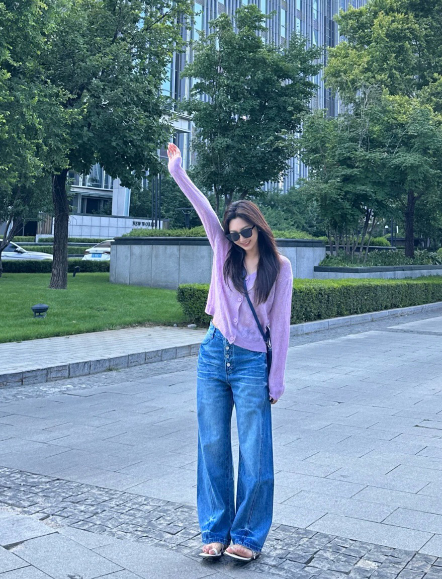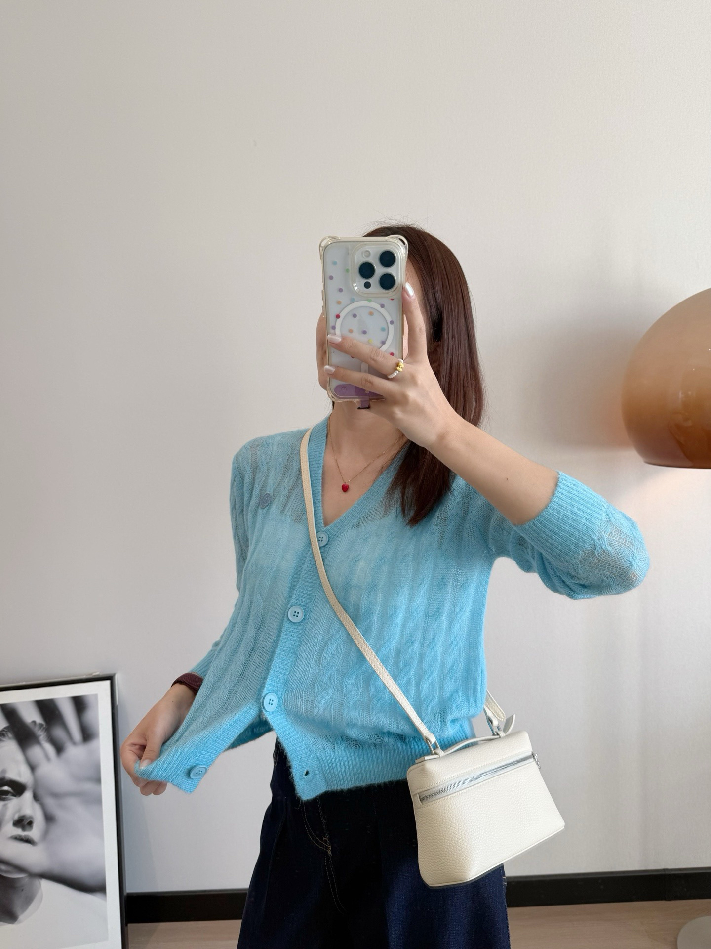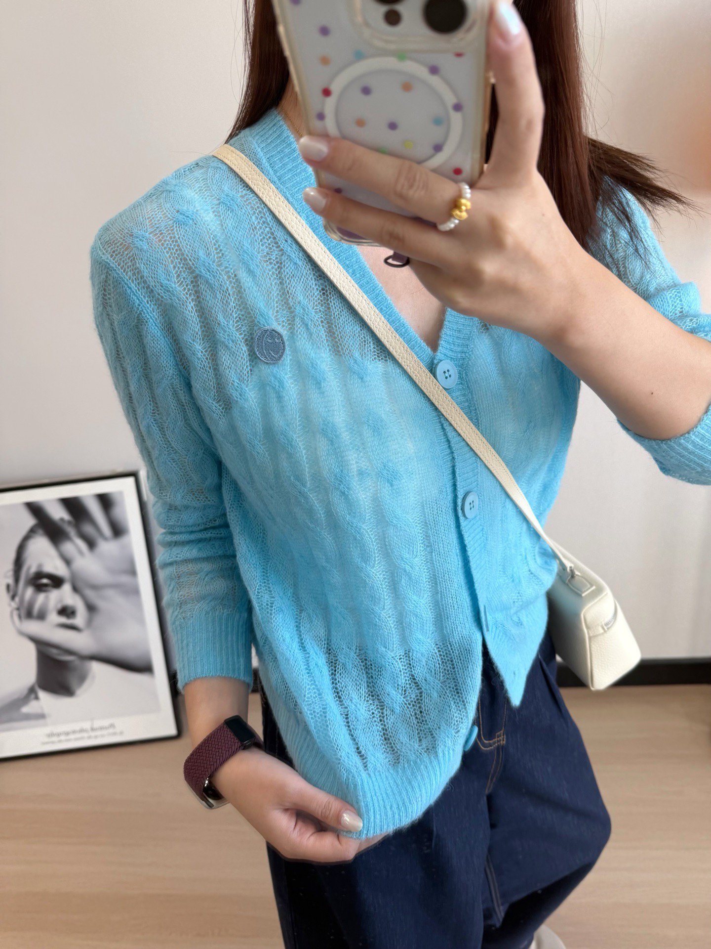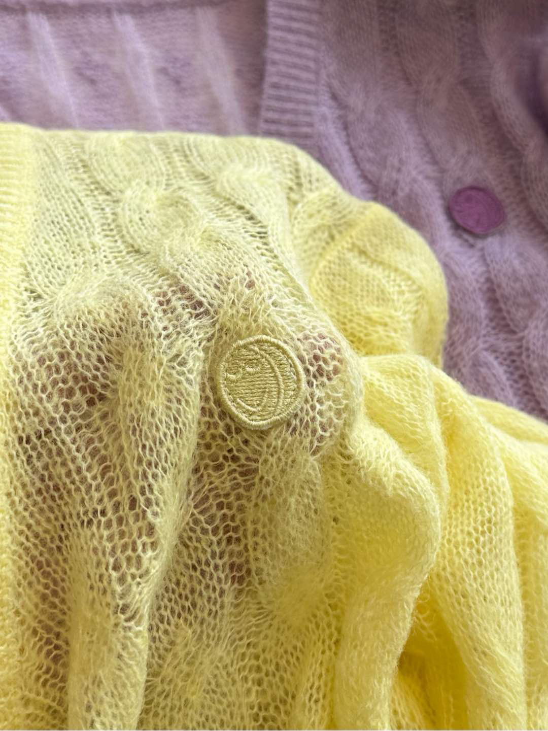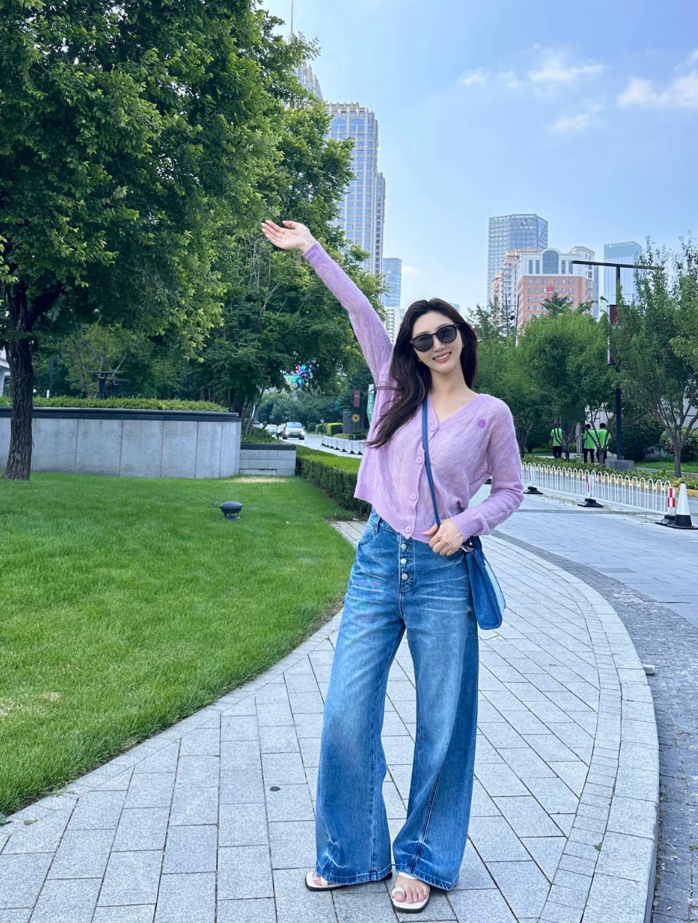 仿佛第二层皮肤般,温柔地贴合每一寸皮肤,上身几乎感觉不到任何重量,每一针镂空纹理都均匀细腻,既有规律又带着手工温度,呈现若隐若现的朦胧微透感。温温柔柔的香芋紫,不挑人,对各种肤色和各种搭配的适配度99.99%