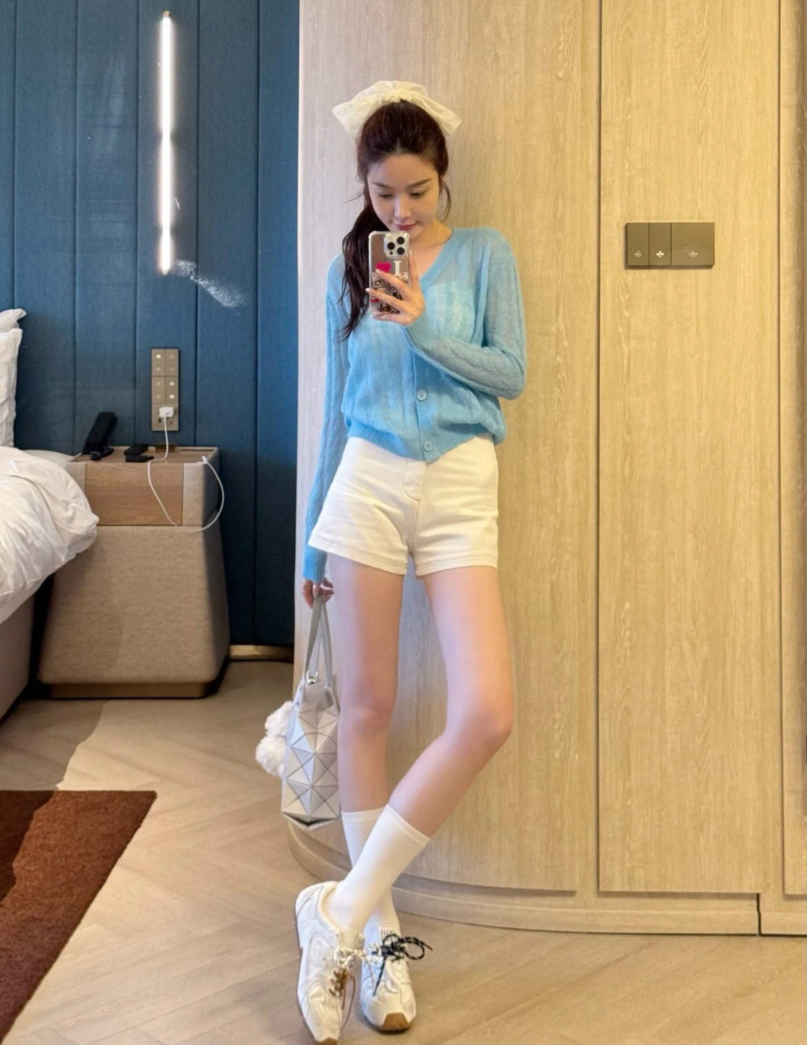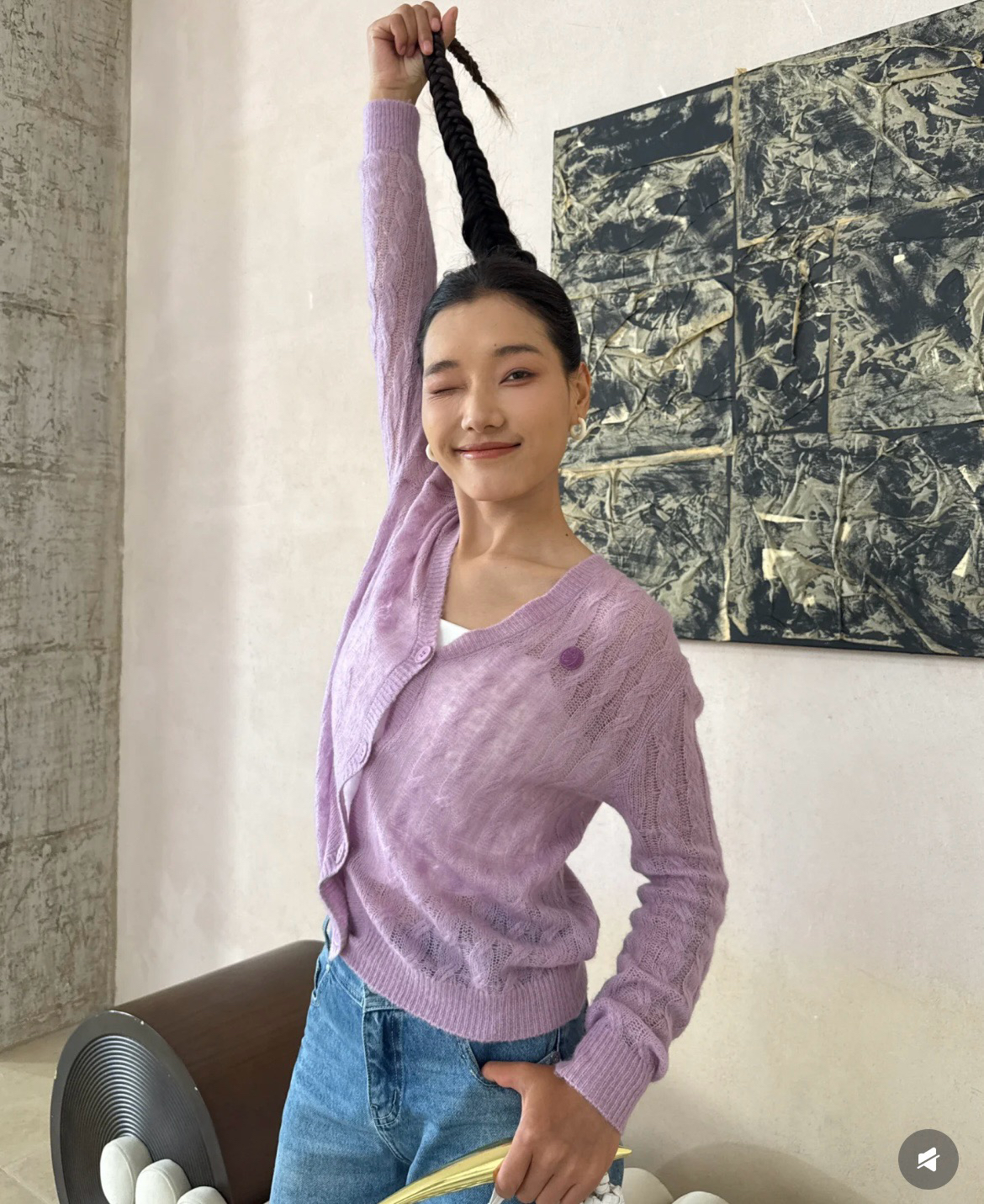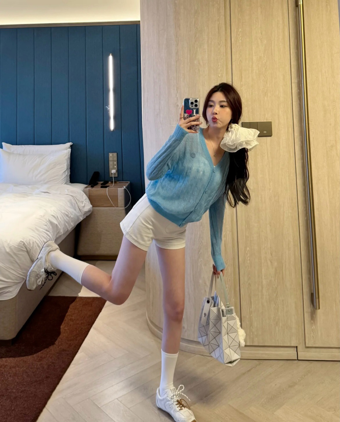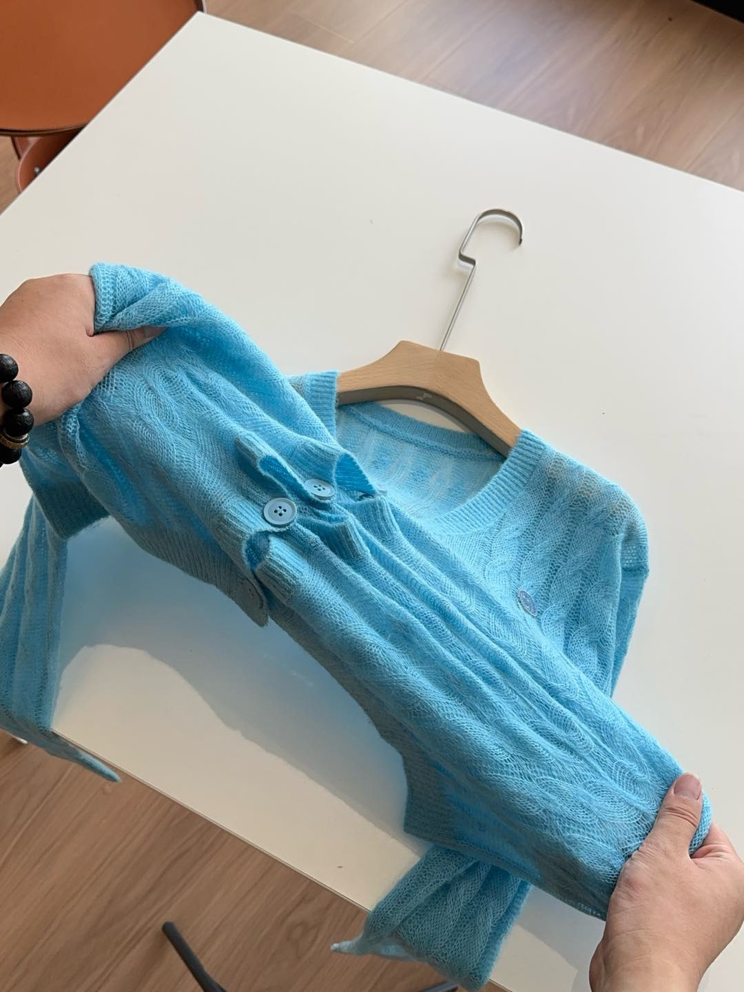 仿佛第二层皮肤般,温柔地贴合每一寸皮肤,上身几乎感觉不到任何重量,每一针镂空纹理都均匀细腻,既有规律又带着手工温度,呈现若隐若现的朦胧微透感。温温柔柔的香芋紫,不挑人,对各种肤色和各种搭配的适配度99.99%