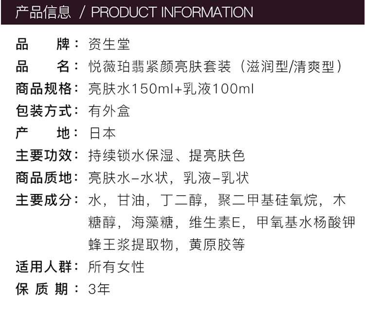 资生堂 新版 Shiseido悦薇抗初老紧颜水乳 化妆水150ml+乳液100ml 跨境购