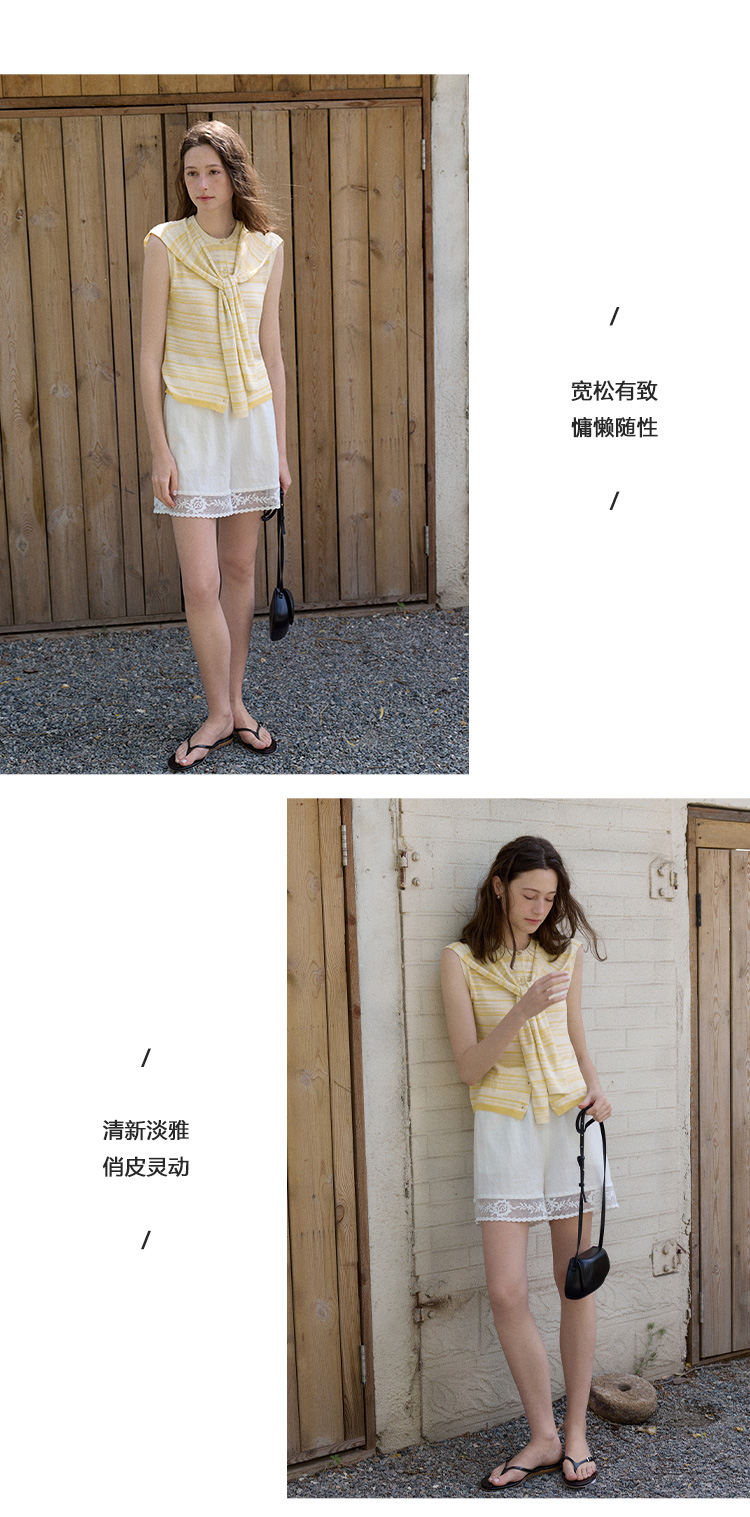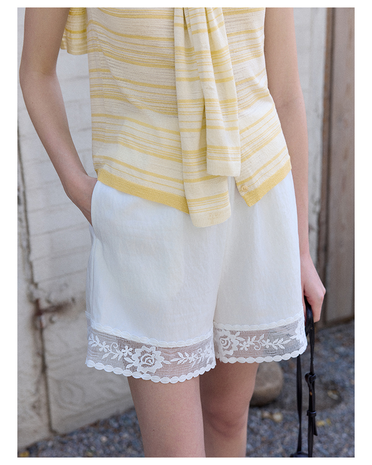 Even Vintage | 莱赛尔混纺 宽松百搭拼接浪漫花边休闲短裤