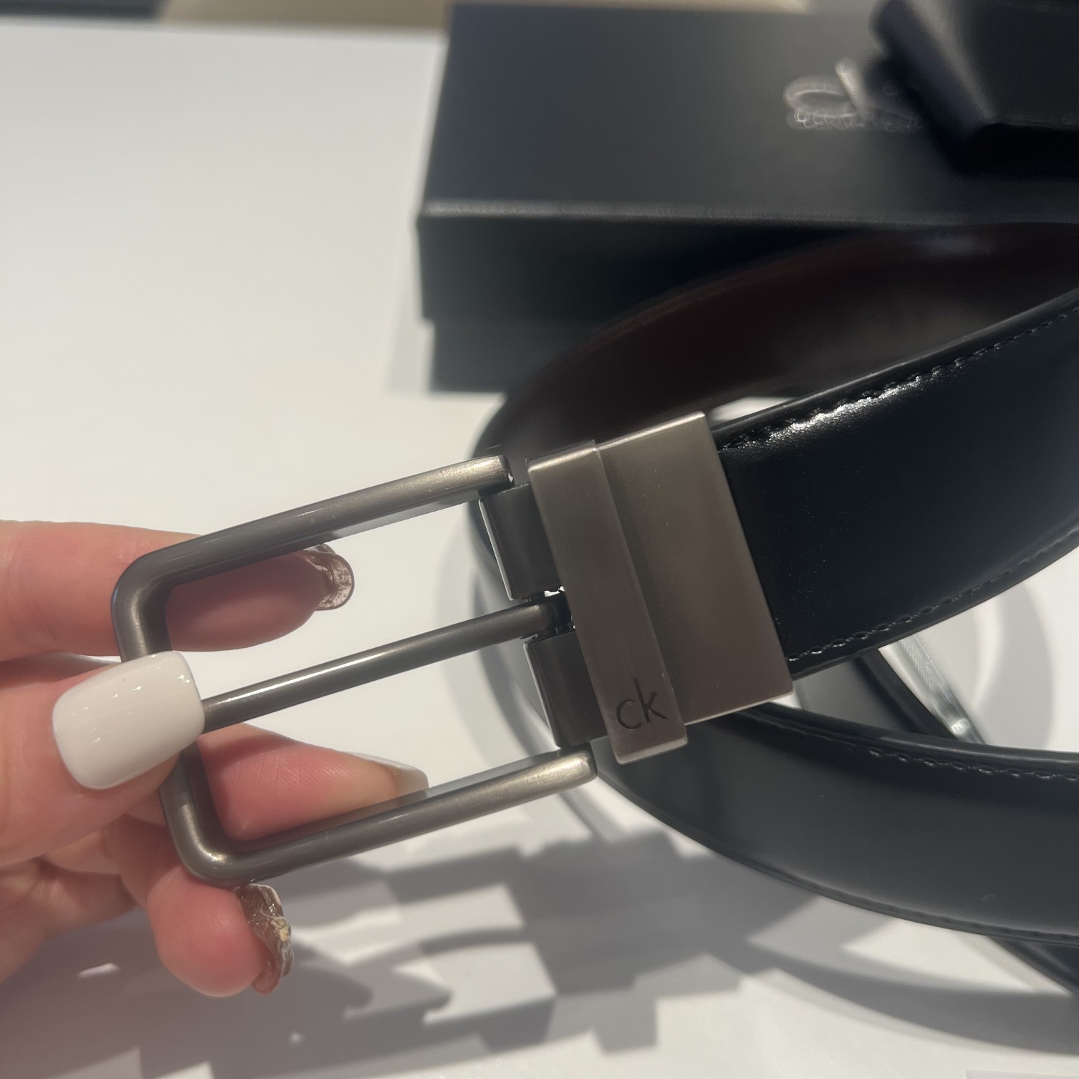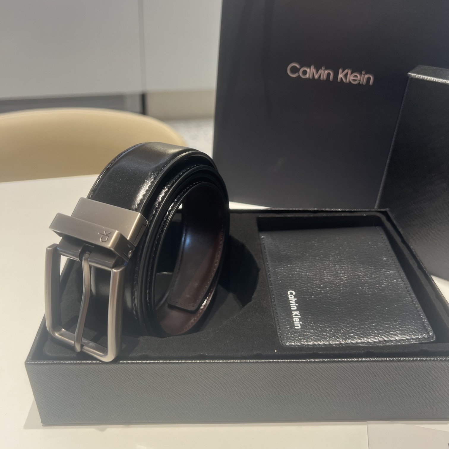 高品质Calvin Klein CK皮带钱包礼盒,腰带钱包套盒,皮带➕钱包,原标原包装➕专柜手提袋!支持防伪扫码!腰带采用质感胎牛皮融合头层牛皮材质打造 ,兼具柔软性与耐损度,从图片中就可看出肌理细腻,皮层厚。钱包使用优质五金Logo,经典的平纹皮质,内衬logo 更凸显高贵,多卡位设计更实用。腰带扣头做工非常精致,logo和扣头模具一体开模的,不会像激光的logo一样磨损。 皮带双面车线,正面黑色,反面咖啡色,双面可以使用,真皮材质。旋转扣头/双面牛皮带身