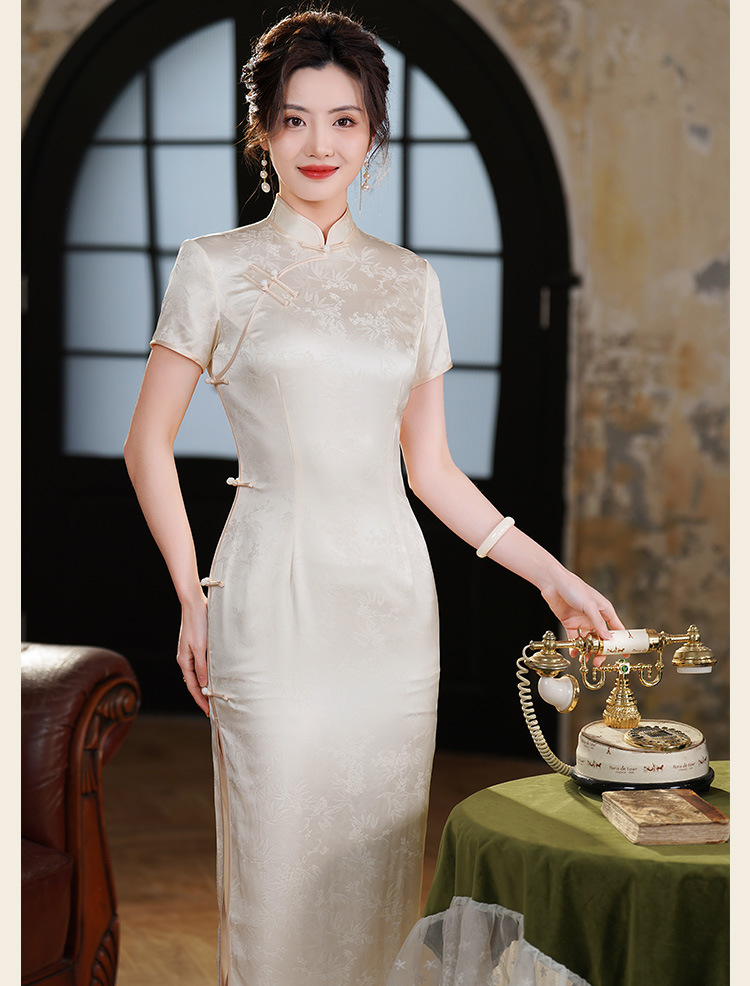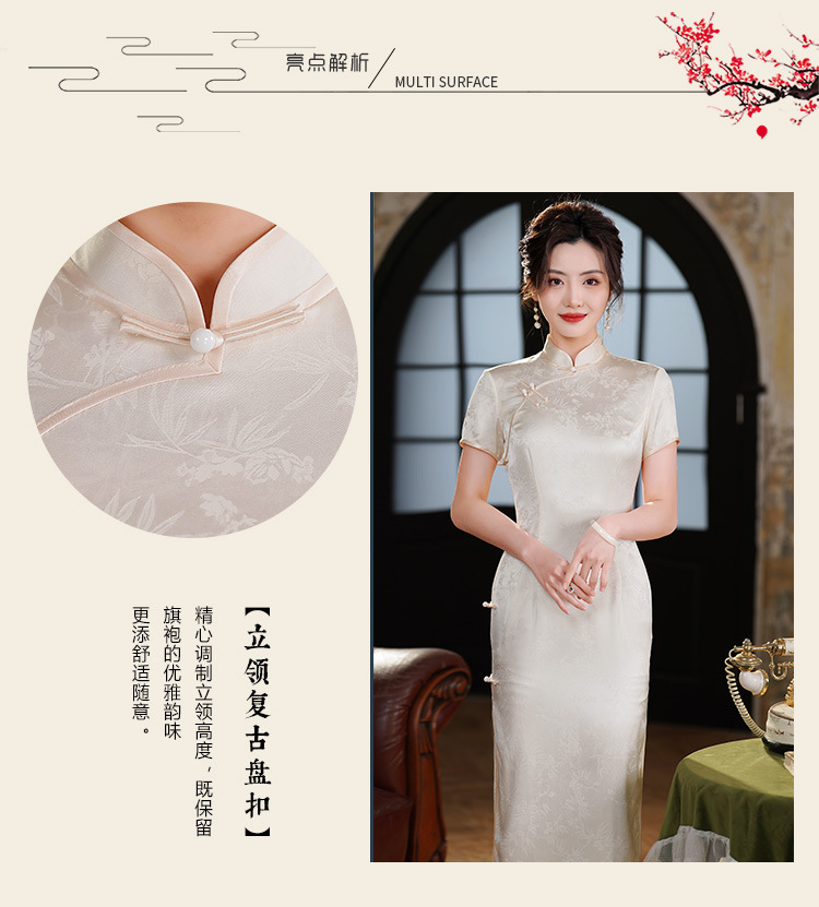 QXY B1506醋酸旗袍改良桑醋酸时尚气质连衣裙