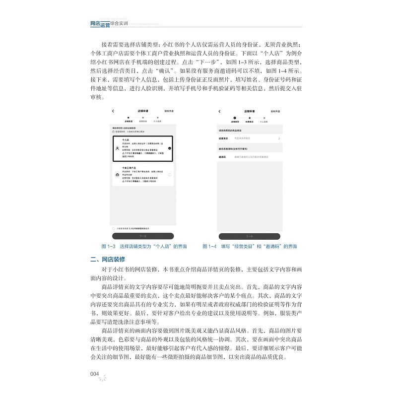 本教材整体设计根据电子商务学科专业的规律和特点,以项目化形式,通过每个模块的各个子任务设计安排相应的实践内容,并辅以理论介绍和解释。选用的网店平台有淘宝、微店、小程序商店、抖店、速卖通等五大平台,任务模块包含:网店平台选择与部署、网店创建与装修、网店推广、网店商品管理、网上客户管理、网店物流管理、网店数据统计与分析等。本教材将集视频、案例、习题、在线测试为一体的立体化教材,满足线上线下混合式教学的需求。