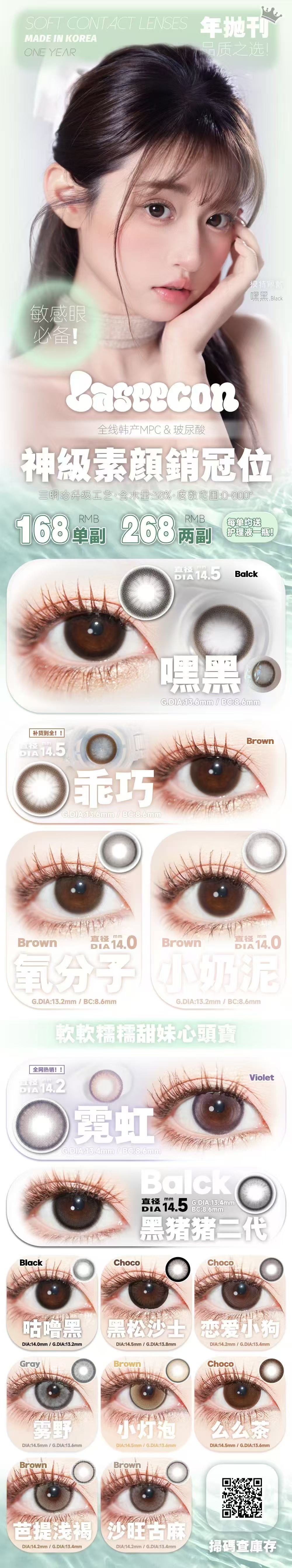 【本月活动】LASEECON美瞳年抛,单副168.2副268