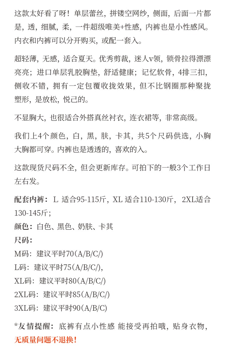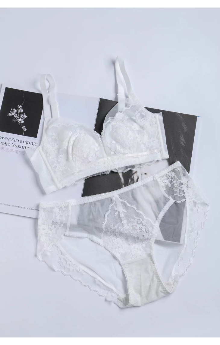 法式精品蕾丝文胸内裤 乳胶胸垫性感内衣套装 超轻薄无感 清仓不退不换