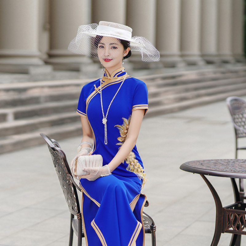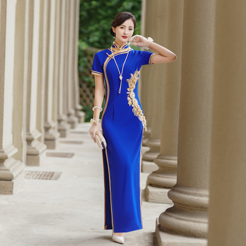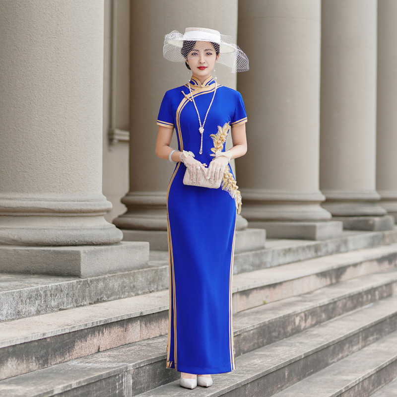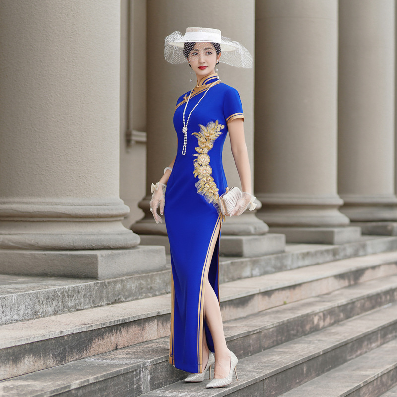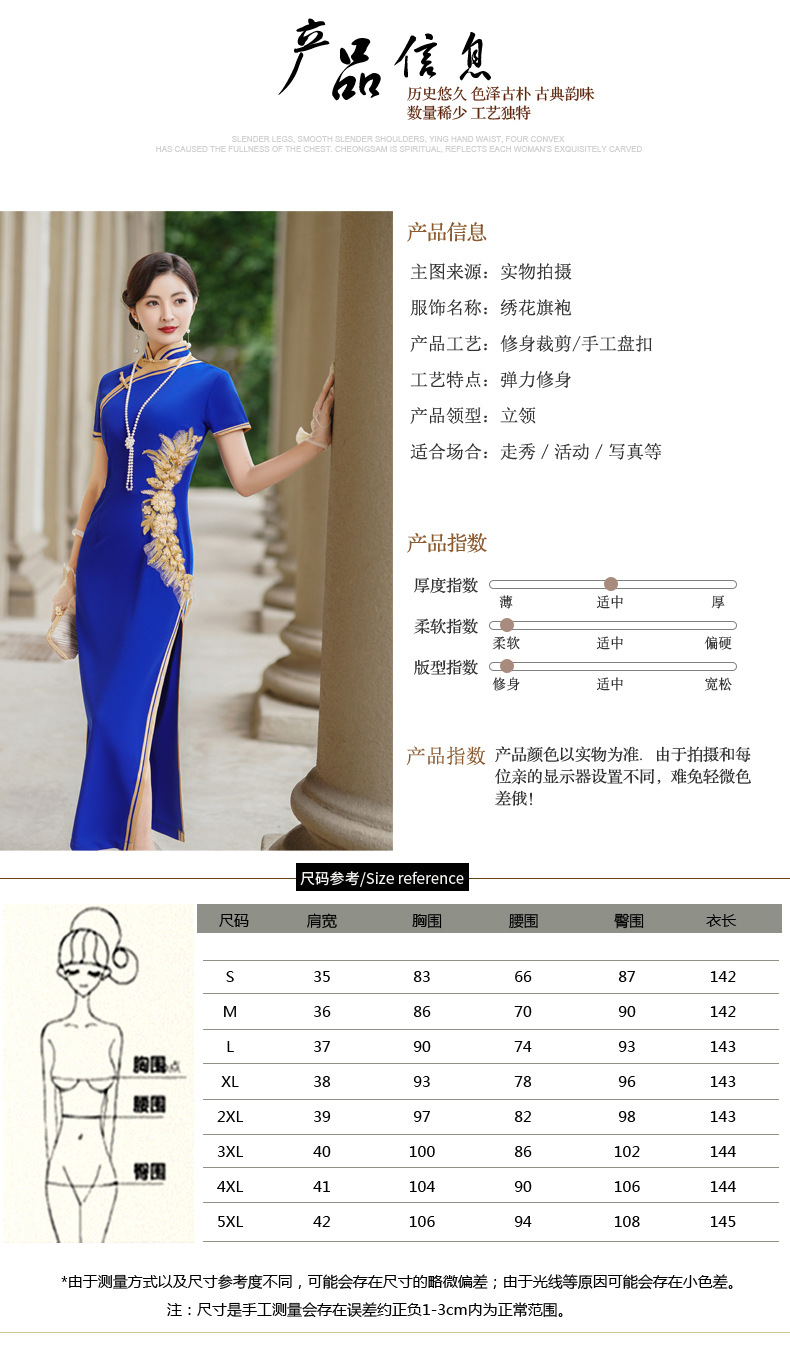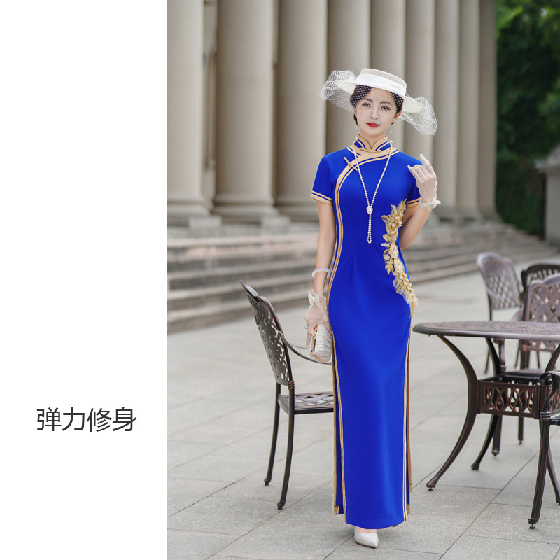 NL-2025新款金色宽边弹力修身大码妈妈演出旗袍礼服 小个子可穿