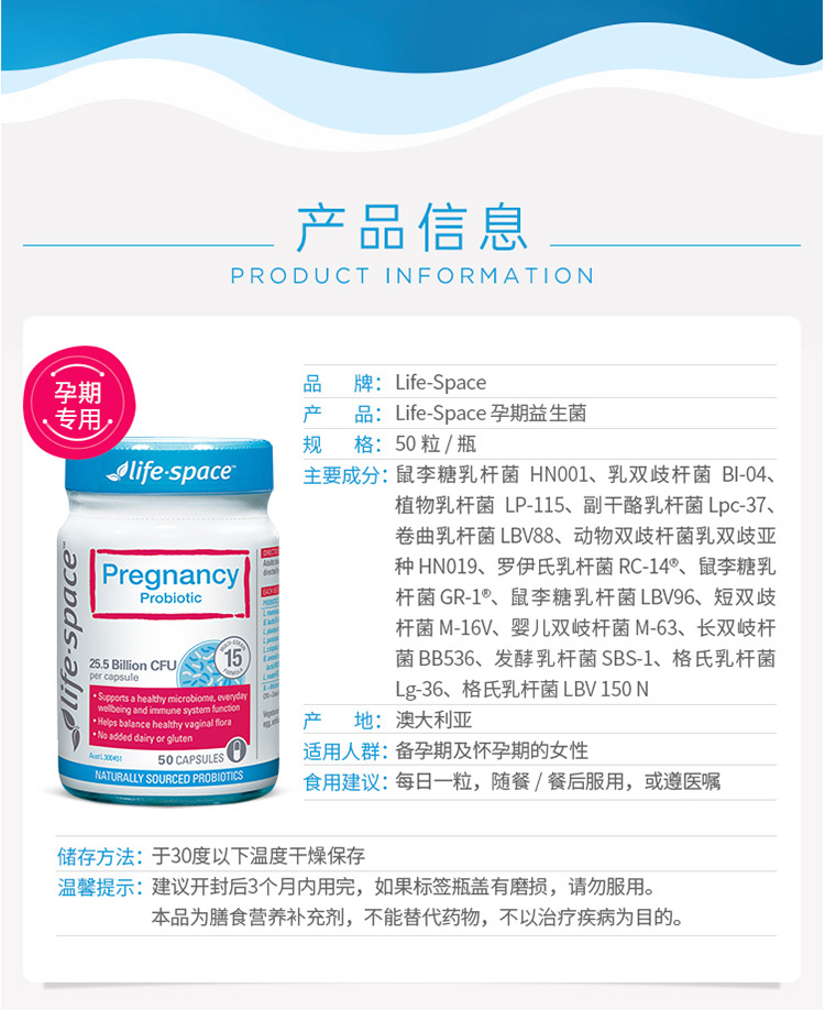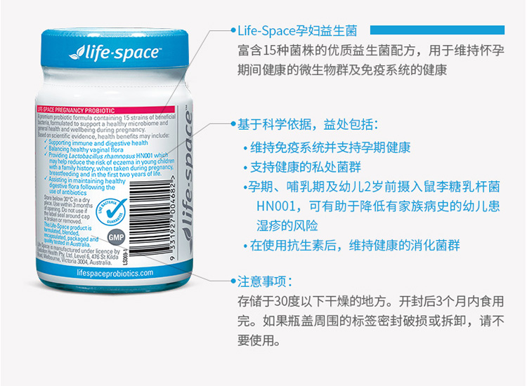 澳洲 life space 孕妇孕期益生菌 50粒
