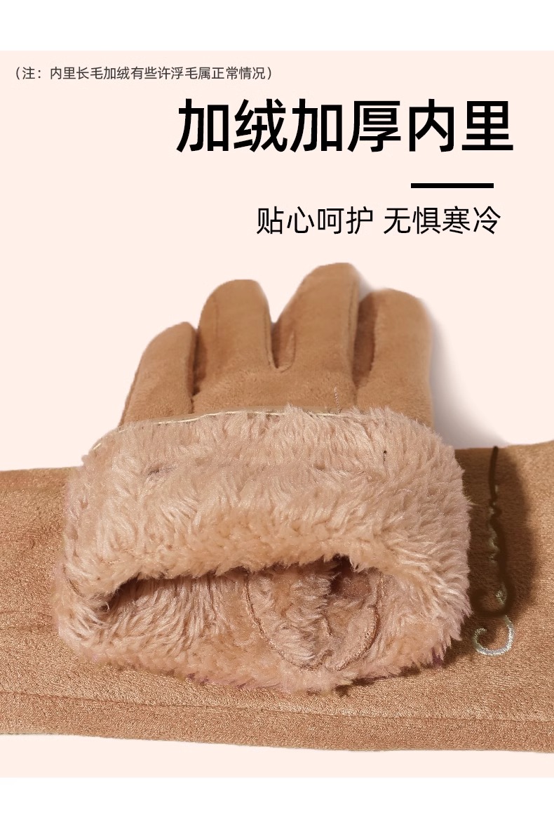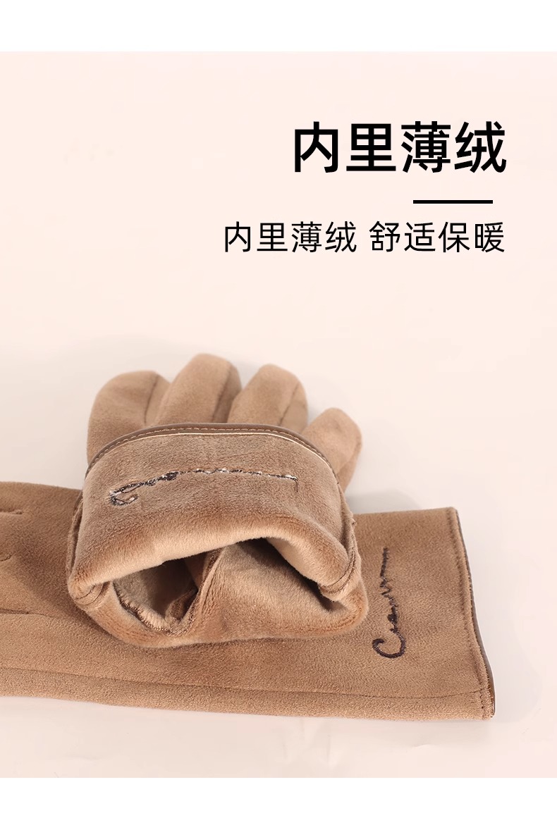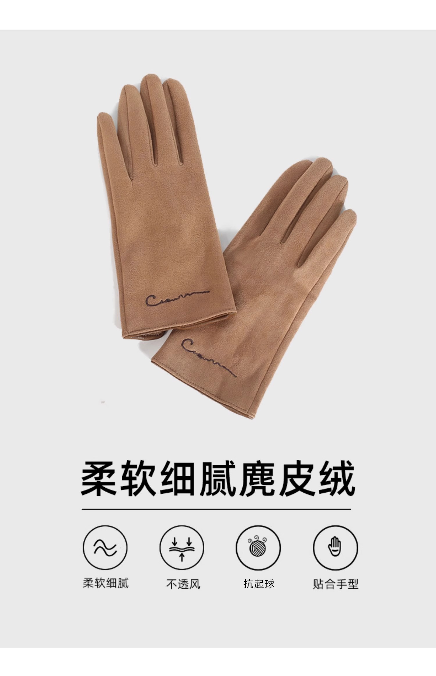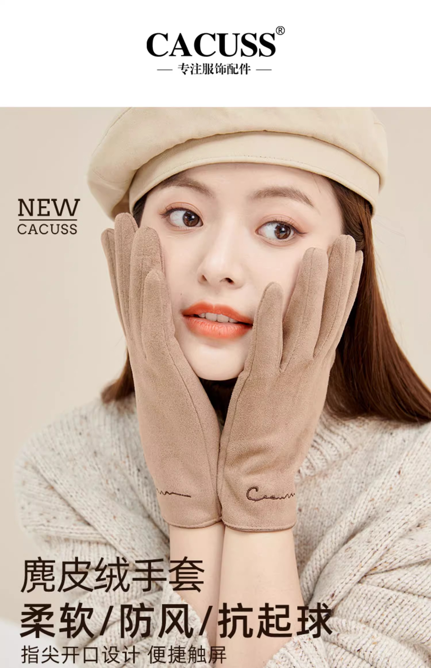 CACUSS冬季麂皮绒手套女 柔软细腻加绒保暖纤细修长 防风防寒抗起球 食指拇指开口设计可触屏